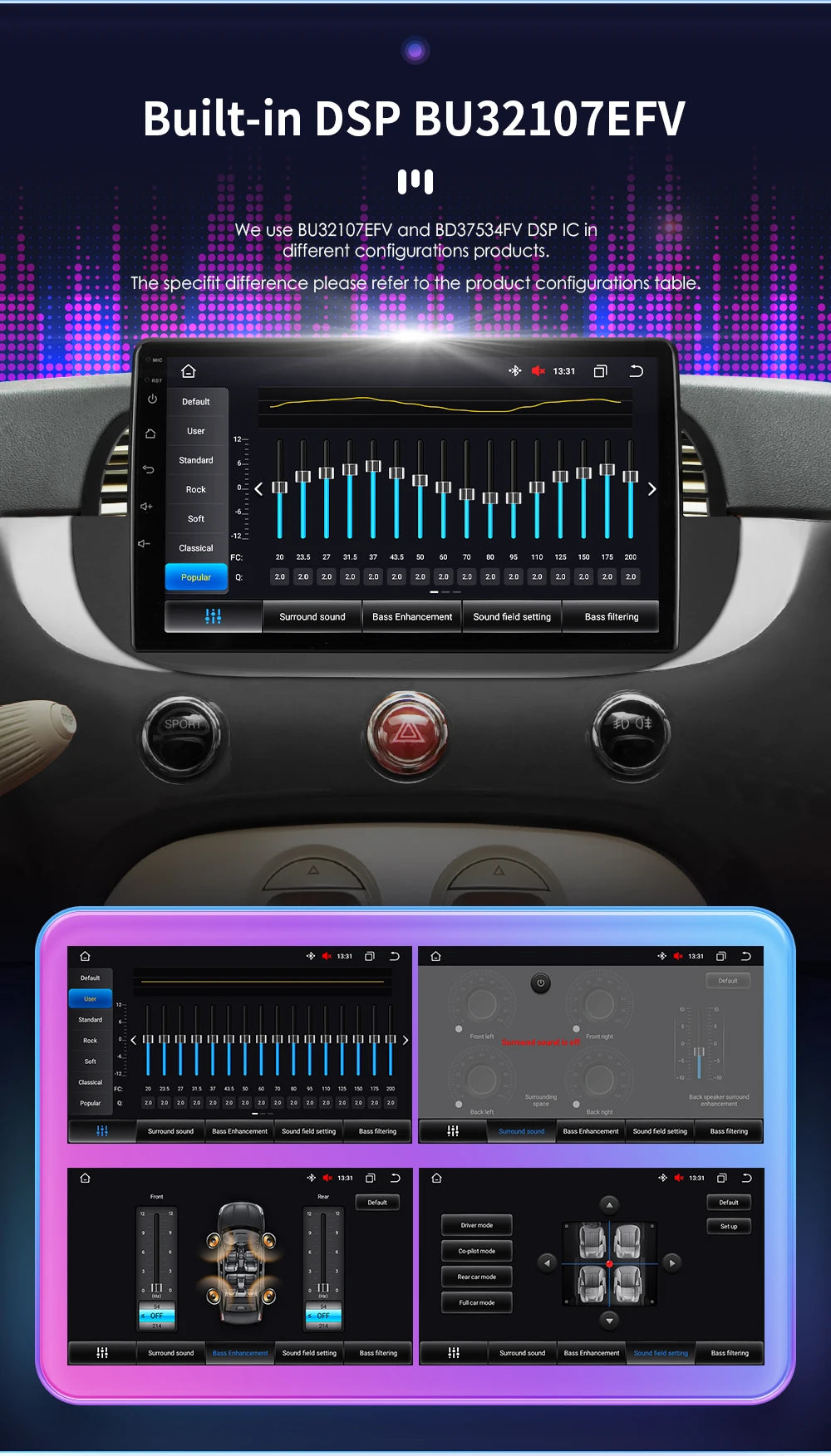 We use BU32107EFV and BD37534FV DSP IC in different configurations products.