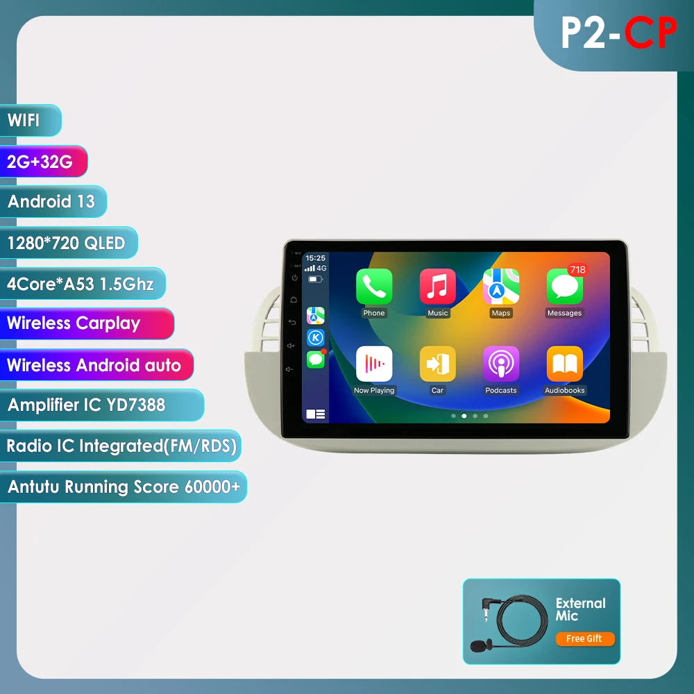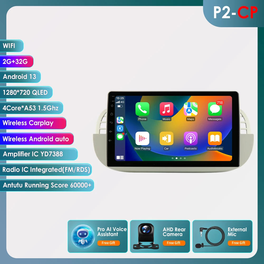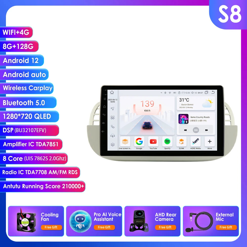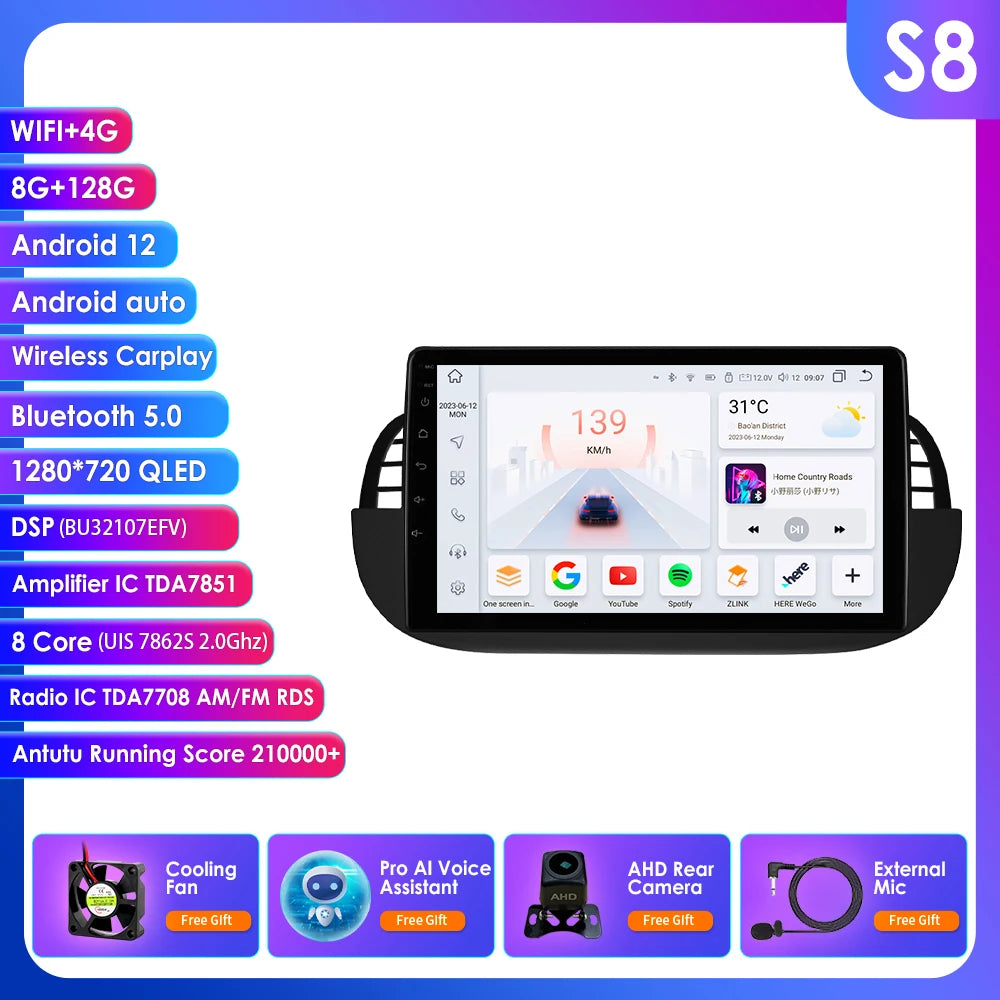 4G 8Core Android Car radio GPS Stereo For Fiat 500 2007-2014 Multimedia Video player 2DIN Autoradio DSP Carplay 7862 Head Unit