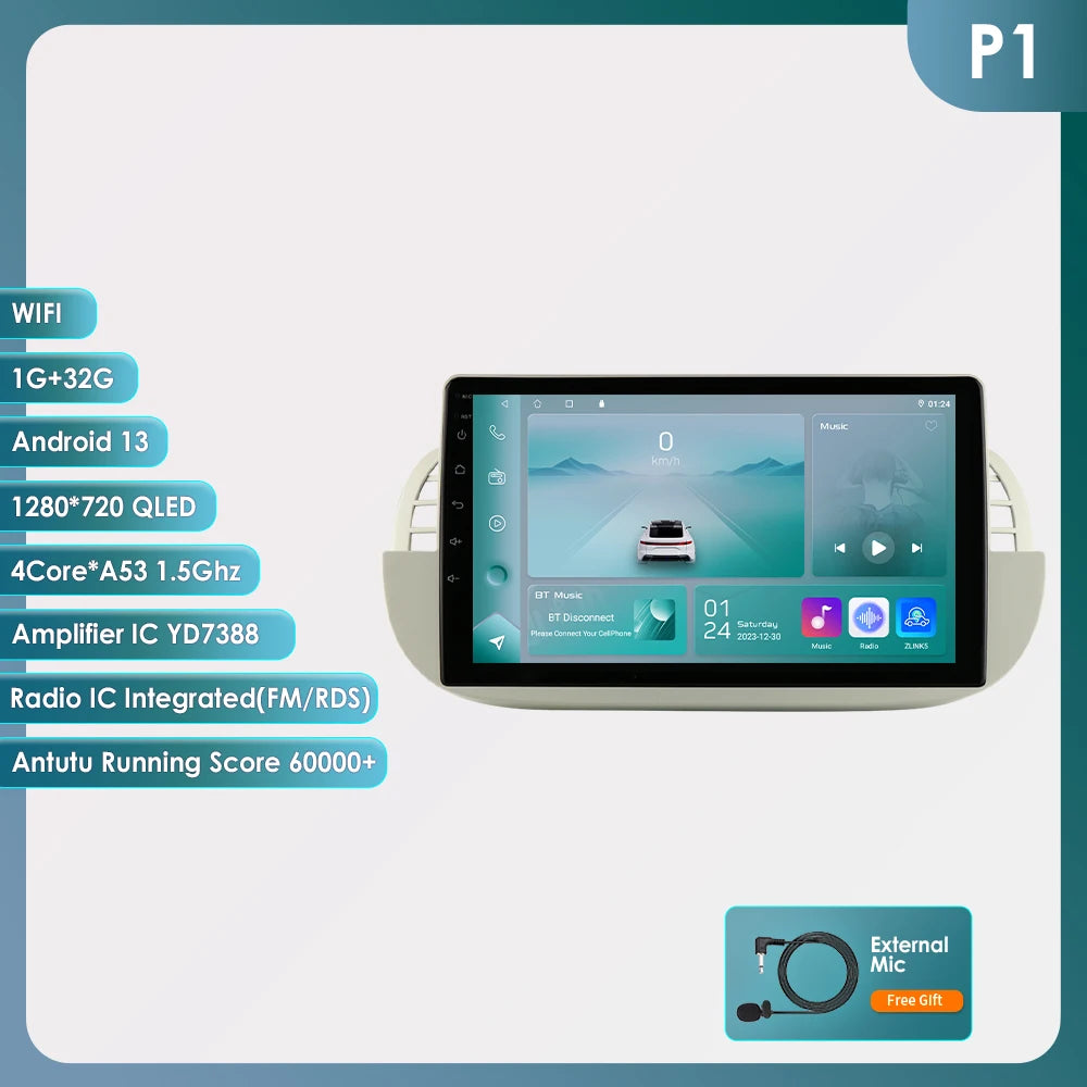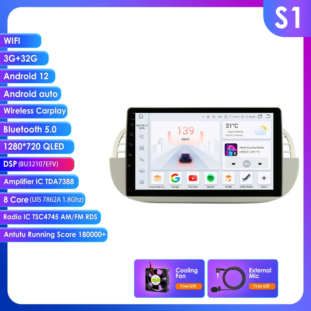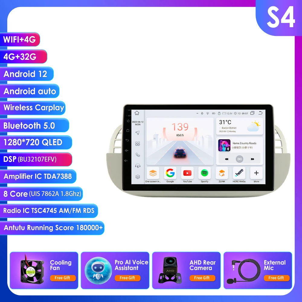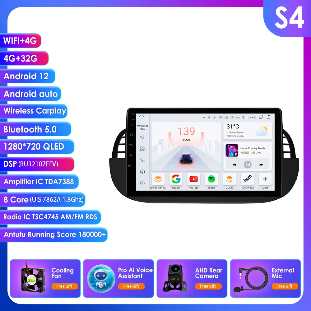 4G 8Core Android Car radio GPS Stereo For Fiat 500 2007-2014 Multimedia Video player 2DIN Autoradio DSP Carplay 7862 Head Unit