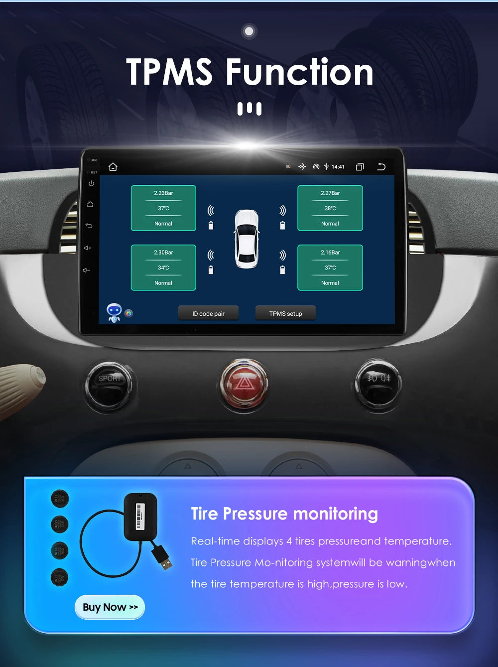 Support USB tire pressure detection: The package does not include tire pressure detection. You can click the image below to buy it.