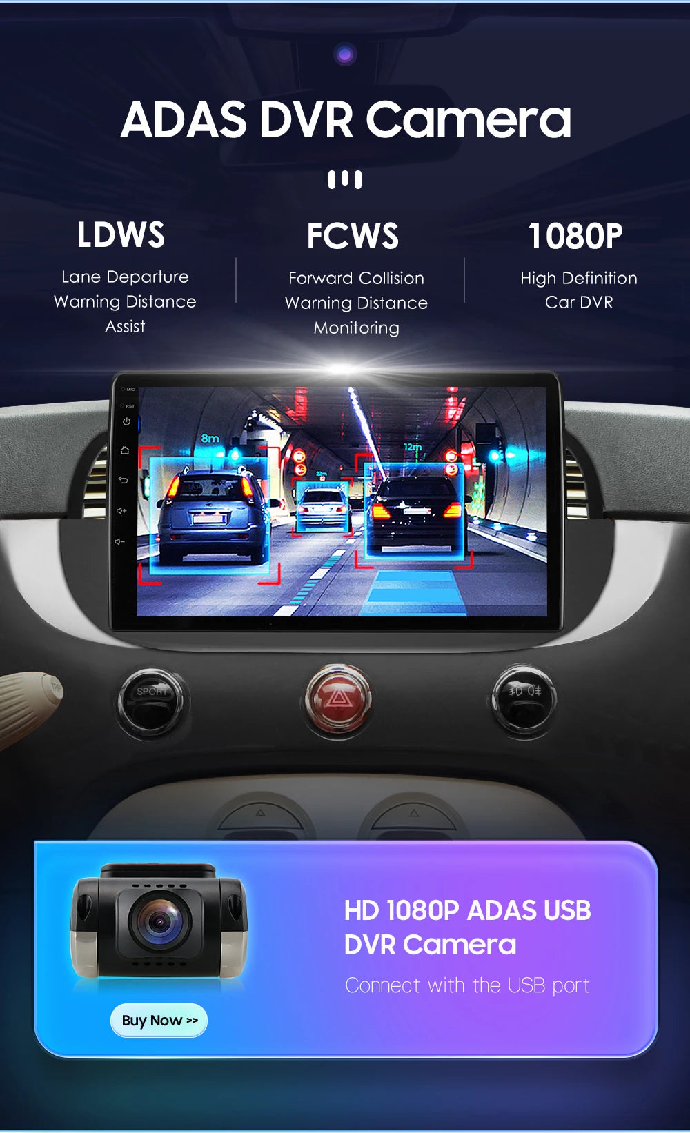 Support connection to ADAS DVR. ADAS DVR has multiple built-in assistive driving technologies,