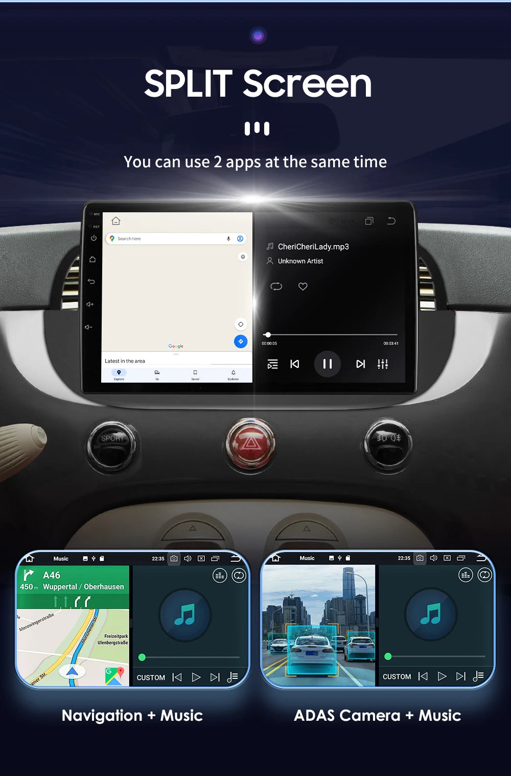 One-screen interaction You can display Navi, DVR, OBD, TPMS separately on your desktop.