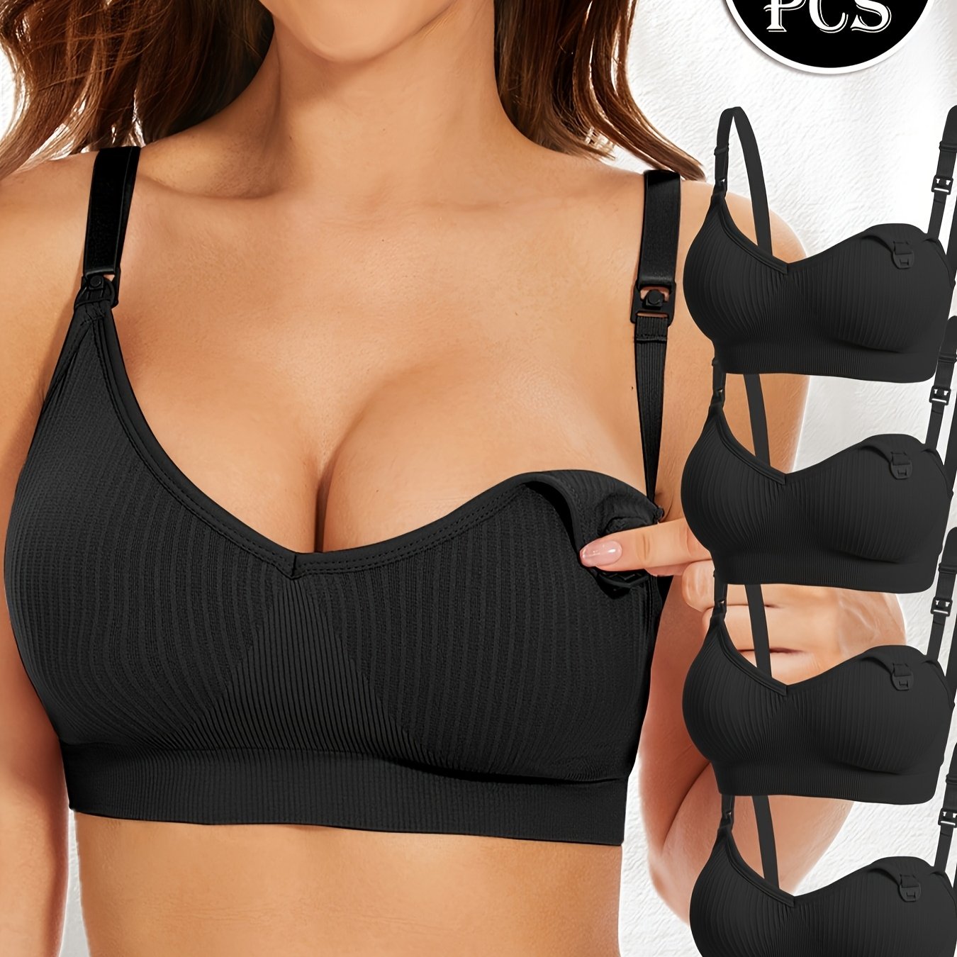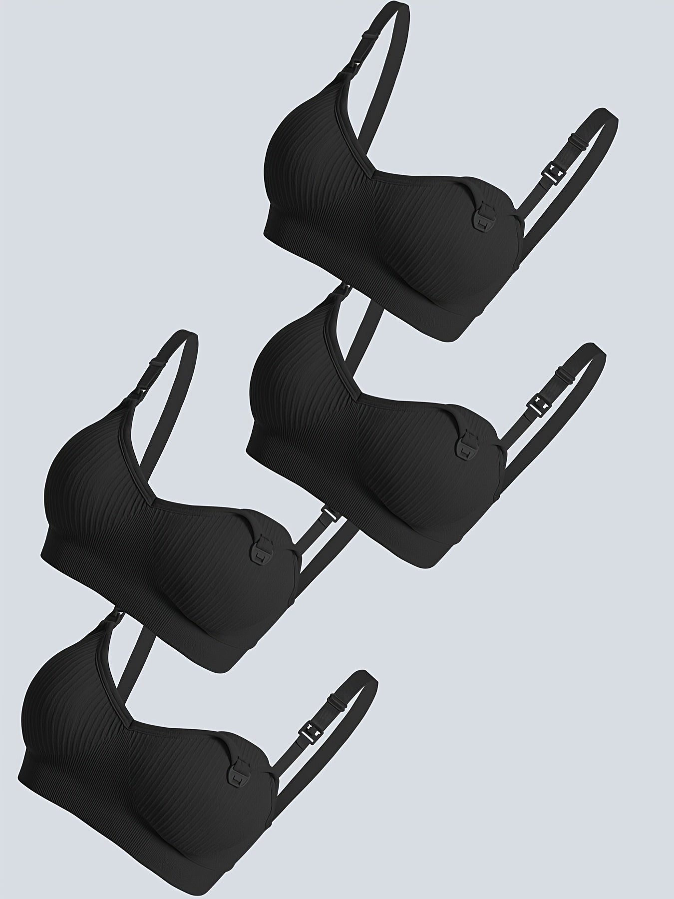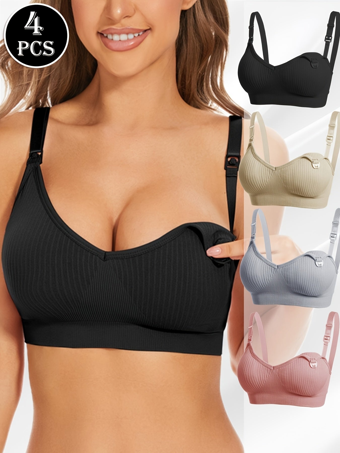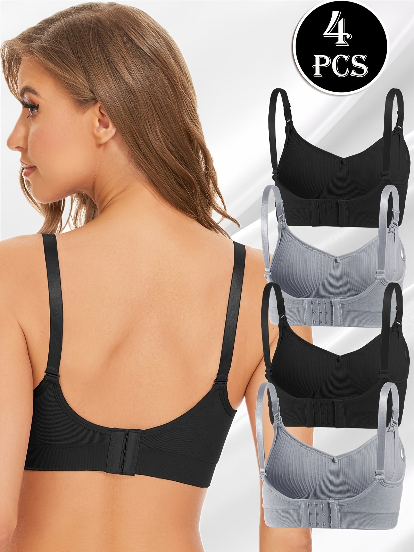 4pz Eleganti Reggiseni da Allattamento Premaman Neri con Chiusura Frontale & Imbottiture Rimovibili - Copertura Completa Traspirante, Tessuto Elasticizzato per Donne, Lavabili in Lavatrice