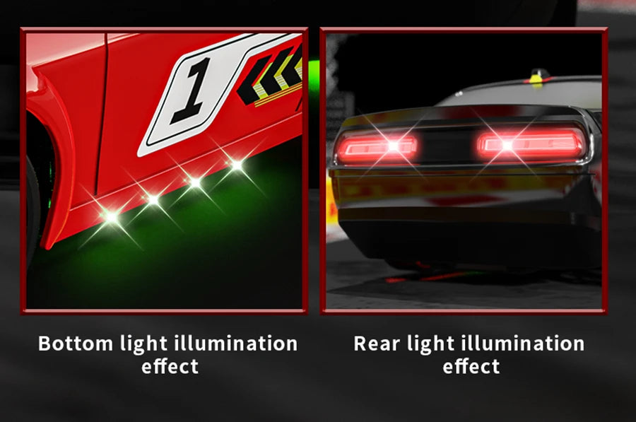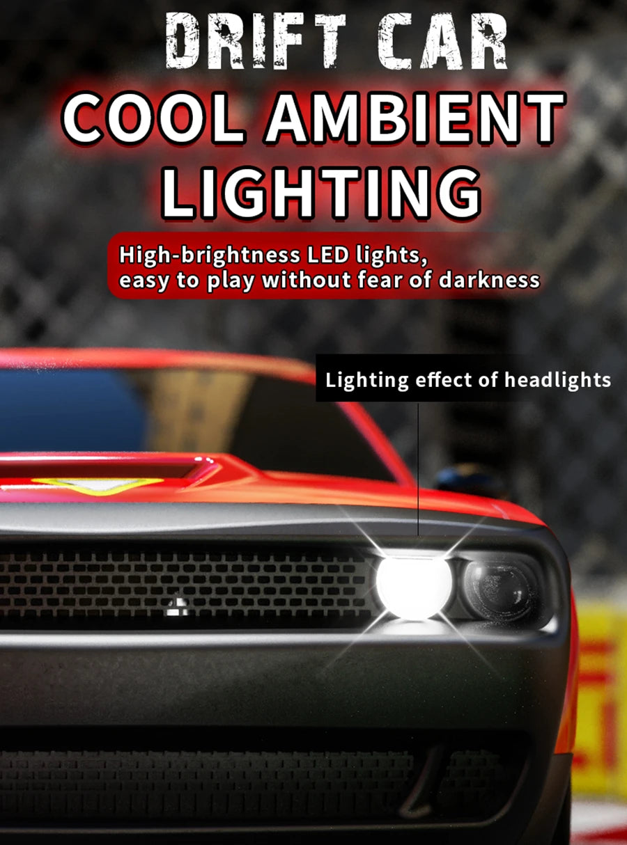 1. Our 4WD Super Drift Car light more. More cool, our headlights and rear wing lights and 2 rows of lights under the car, Most of the similar products on the surface only have headlights.