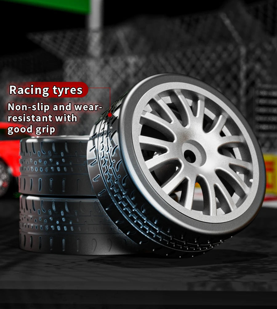 Versatile 4WD Drift RC Car: This 4WD RC drift car comes with replaceable racing and drifting tires, allowing you to switch between high-speed races and drift races with ease.