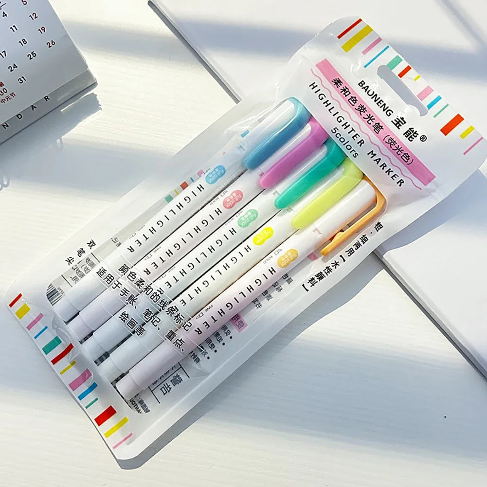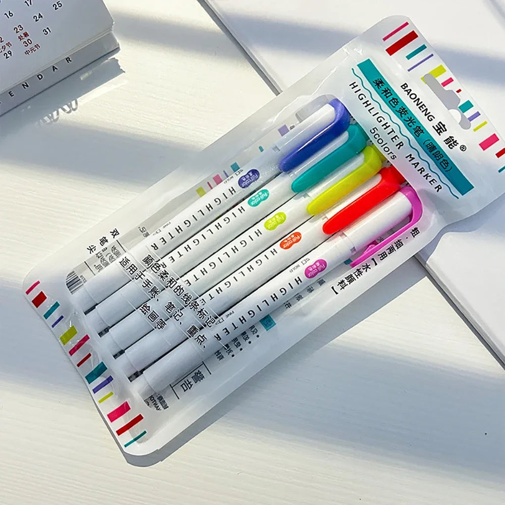 5 Colors/box Double Headed Highlighter Pen Set Fluorescent Markers Highlighters Pens Art Marker Japanese Cute Kawaii Stationery