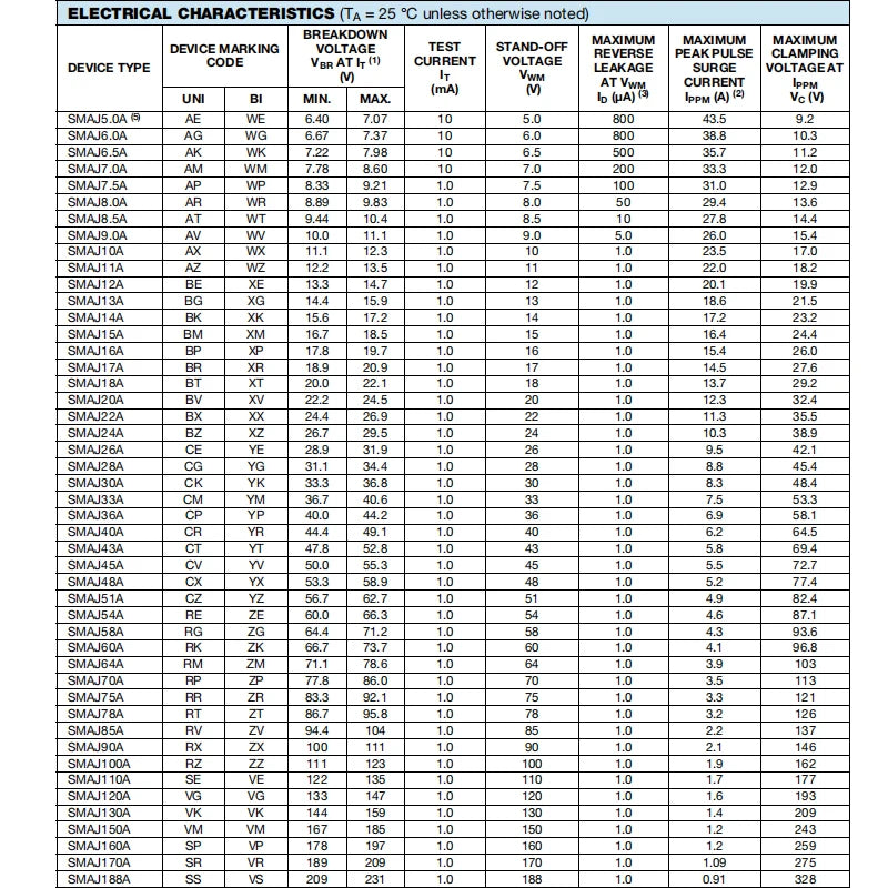 50pcs Smd Tvs Diode SMAJ26CA SMAJ28CA SMAJ30CA SMAJ33CA SMAJ36CA SMAJ43CA SMAJ45CA SMAJ48CA SMAJ51CA SMAJ54CA SMA_DO-214AC