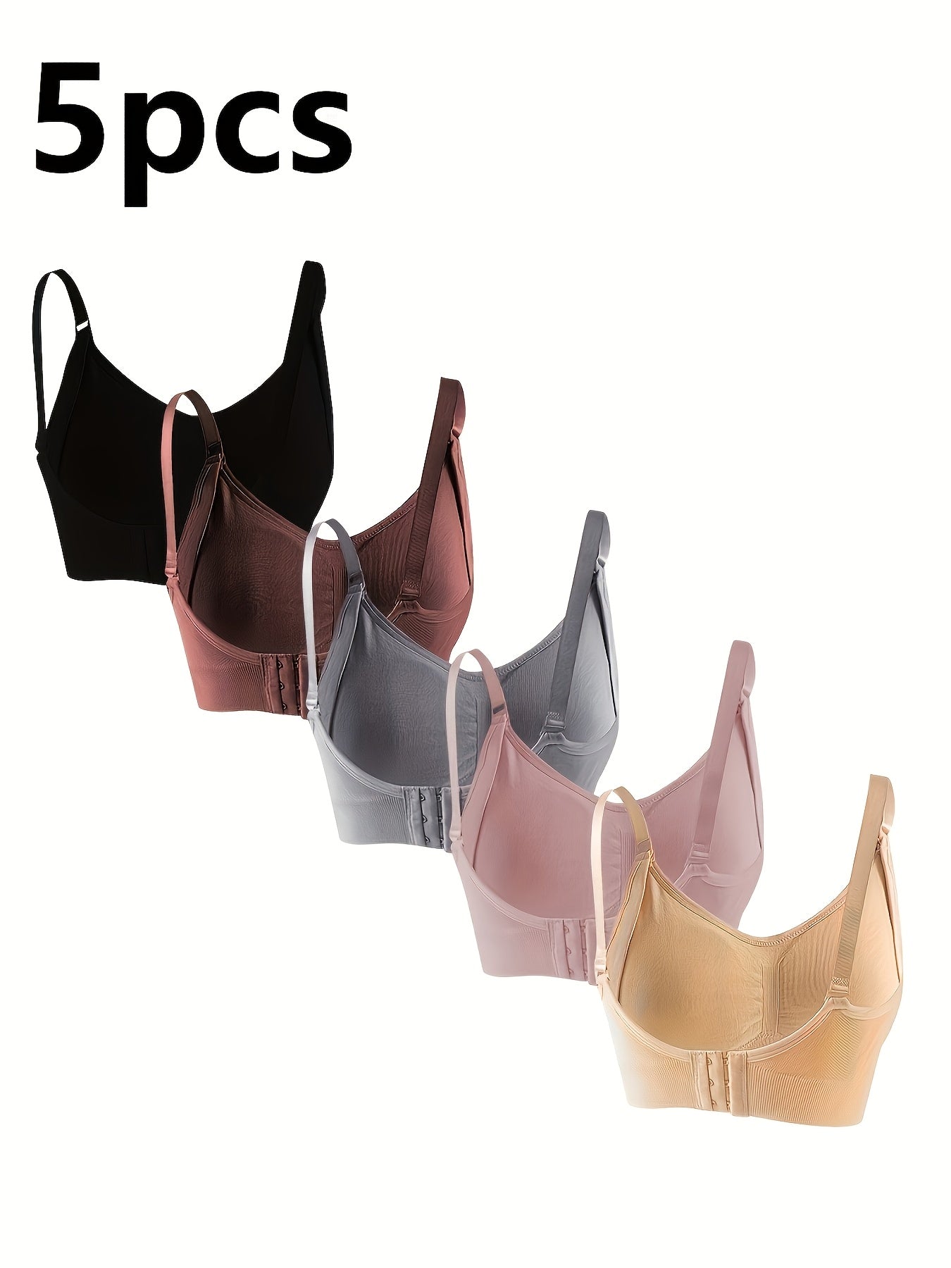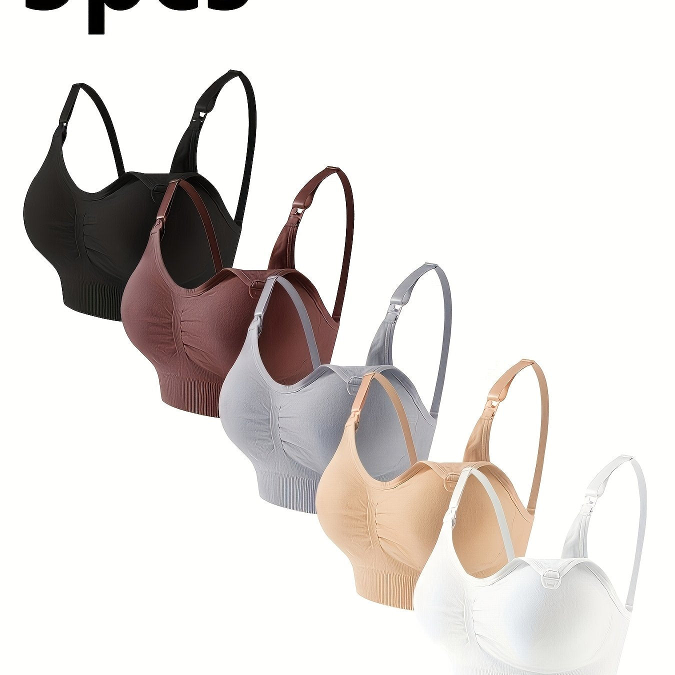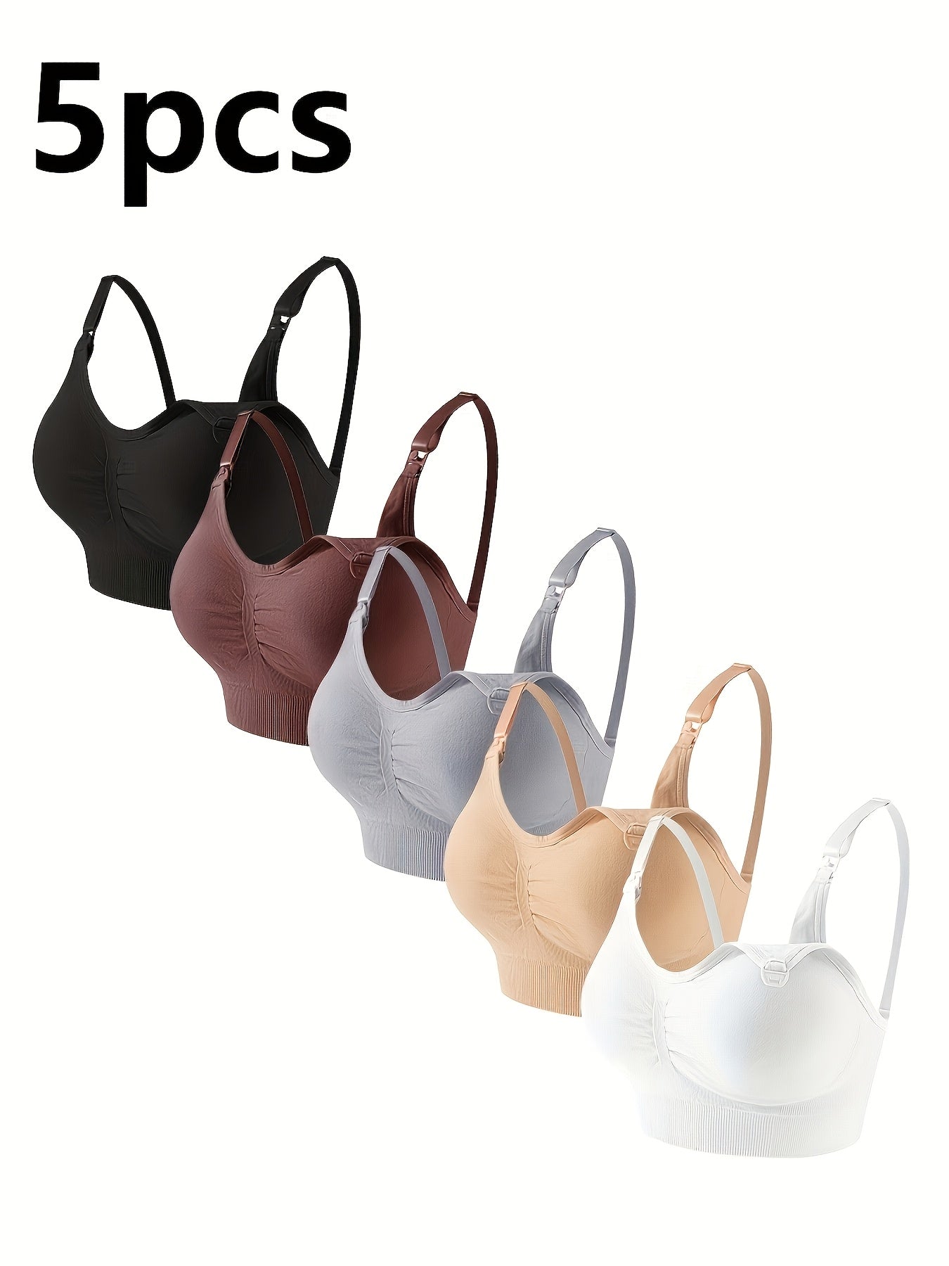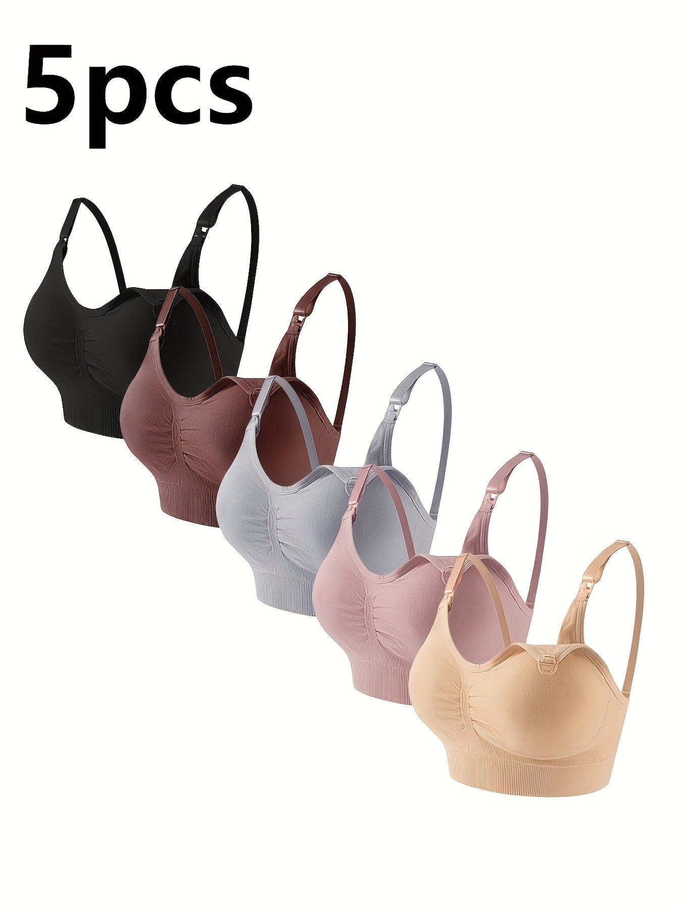 5pz Reggiseni da Maternità con Chiusura Frontale per Donne - Misto Nylon & Elastan Morbido, Design Elegante, Spalline Regolabili, Nero/Marrone/Grigio/Rosa/Beige, Solo Lavaggio a Mano, Abbigliamento per l'Allattamento