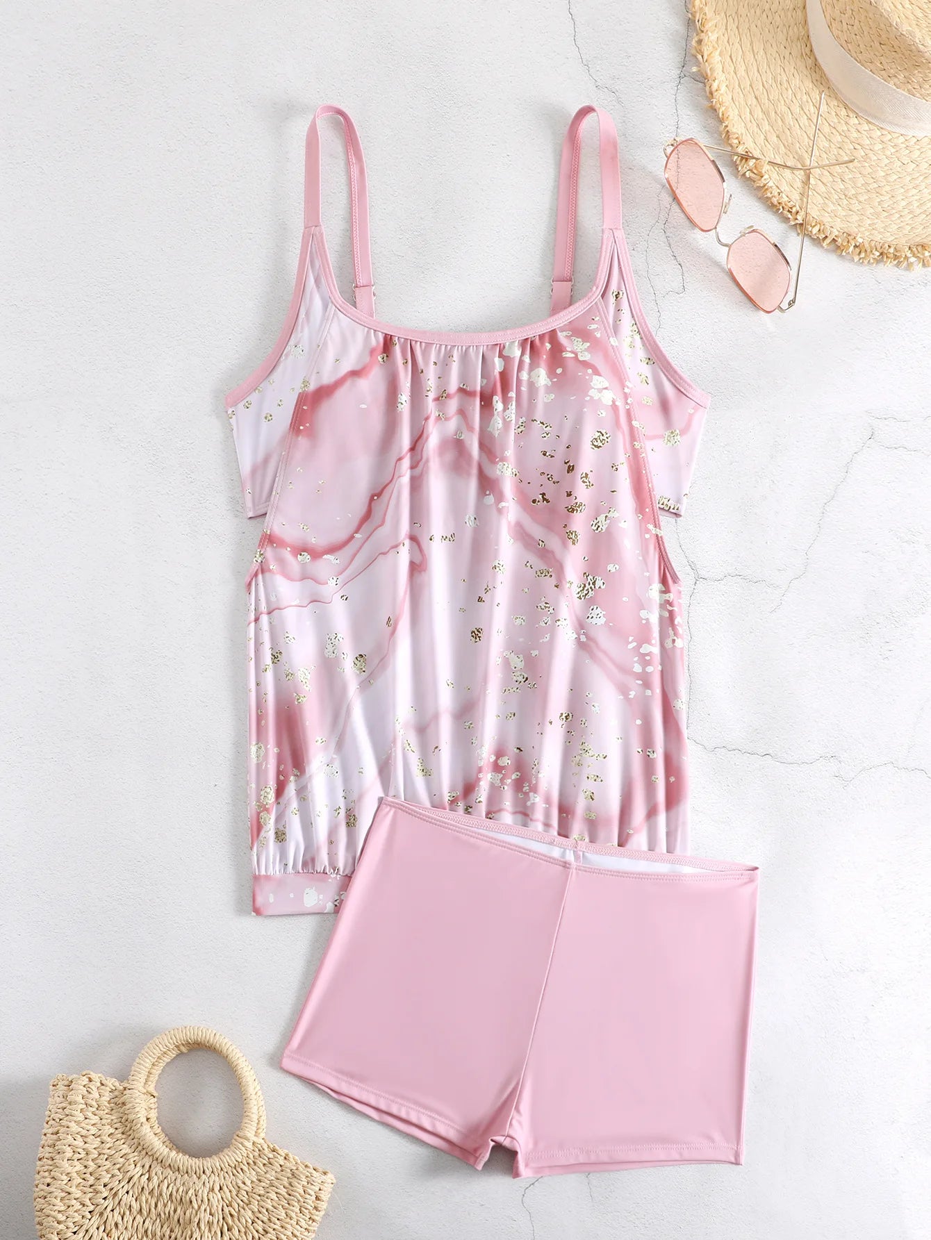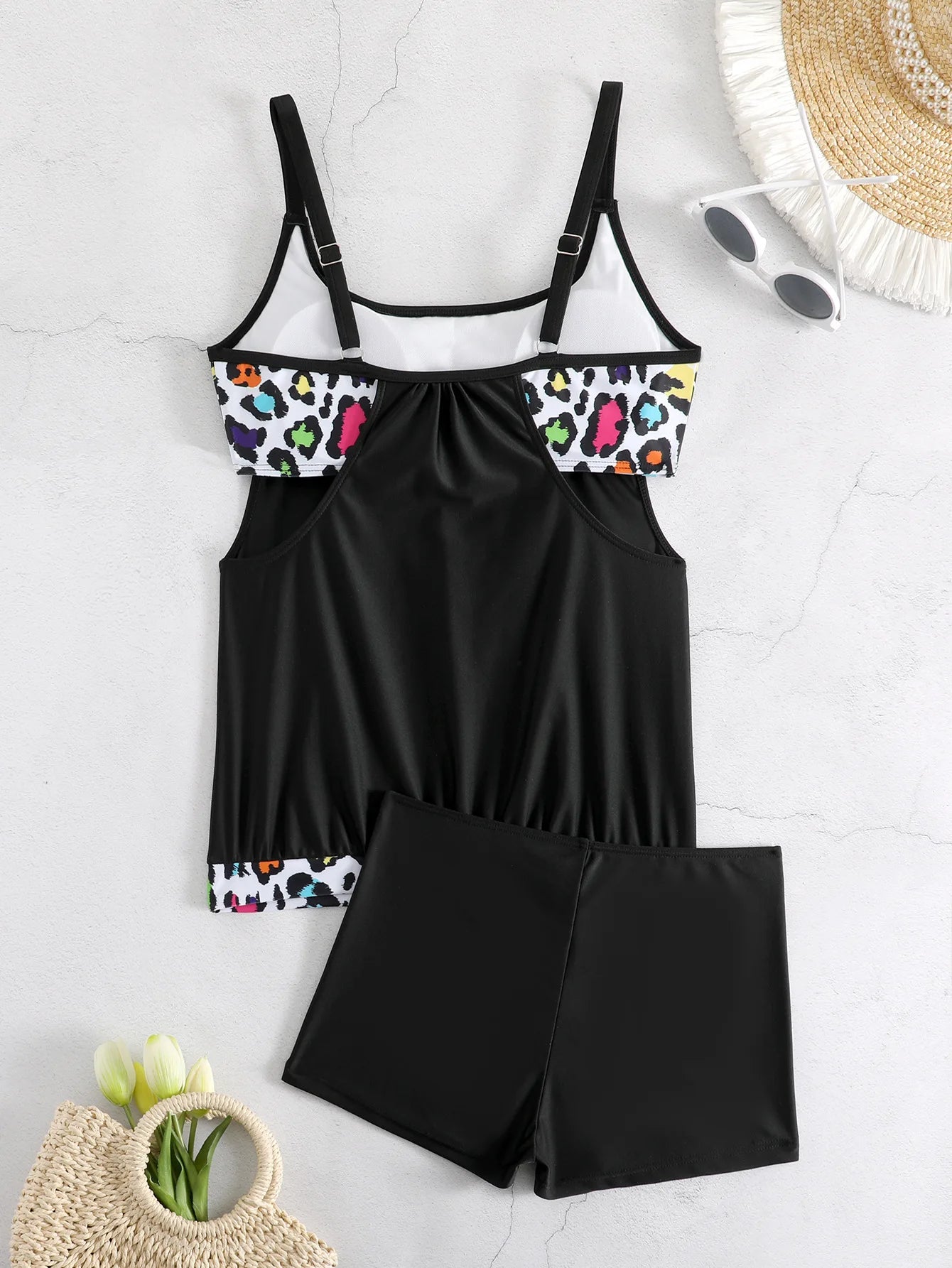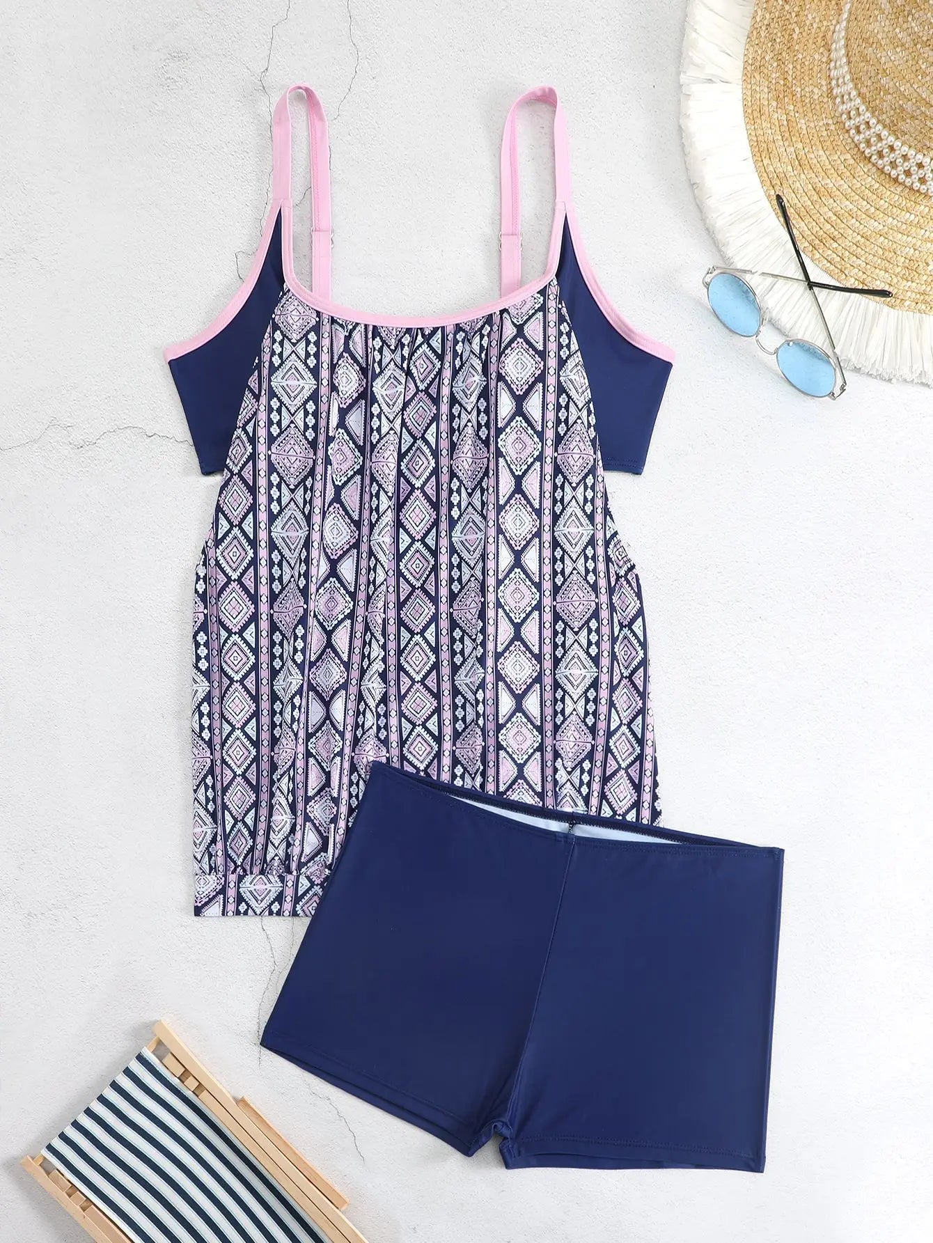 5XL Plus Size Swimsuit Chubby Women Tankini Print Large Summer Swimming Dress Bikini Beachwear Bathing Suit Swimwear Mujer 2025