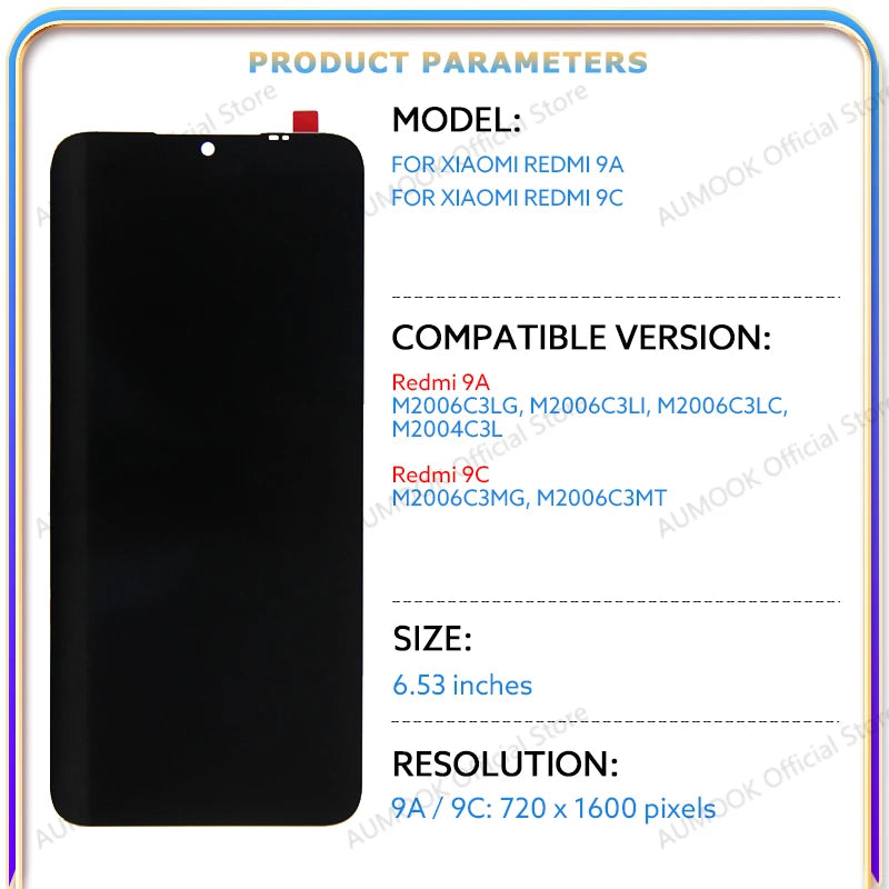 6.53" IPS LCD For Xiaomi Redmi 9A 9C LCD Display Touch Screen Digitizer Assembly M2006C3LG M2006C3MG LCD Replacement Parts