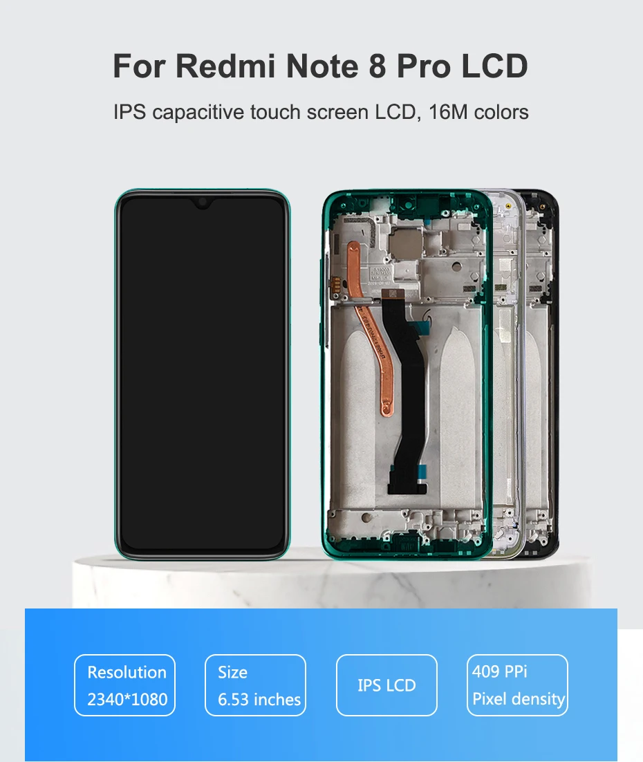 6.53" per Xiaomi Redmi Note 8 Pro Display LCD Touch Screen, per Redmi Note8Pro M1906G7I Display LCD Sostituisci, con cornice