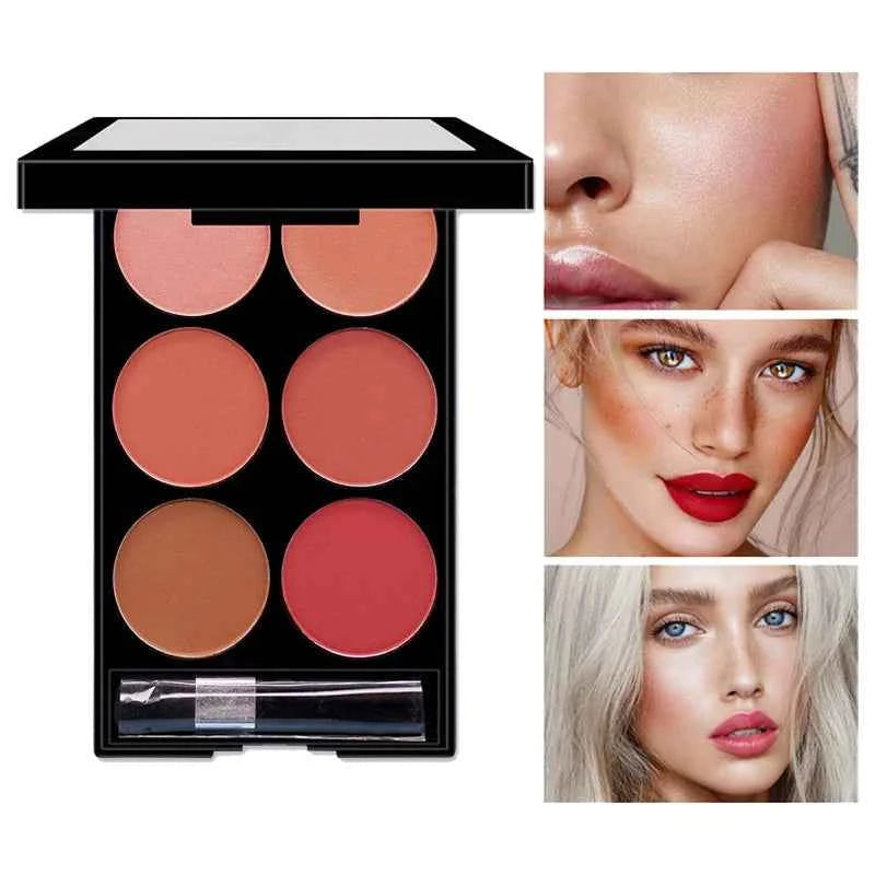 6-color blush and contouring all-in-one palette, pearlescent matte powder makeup palette