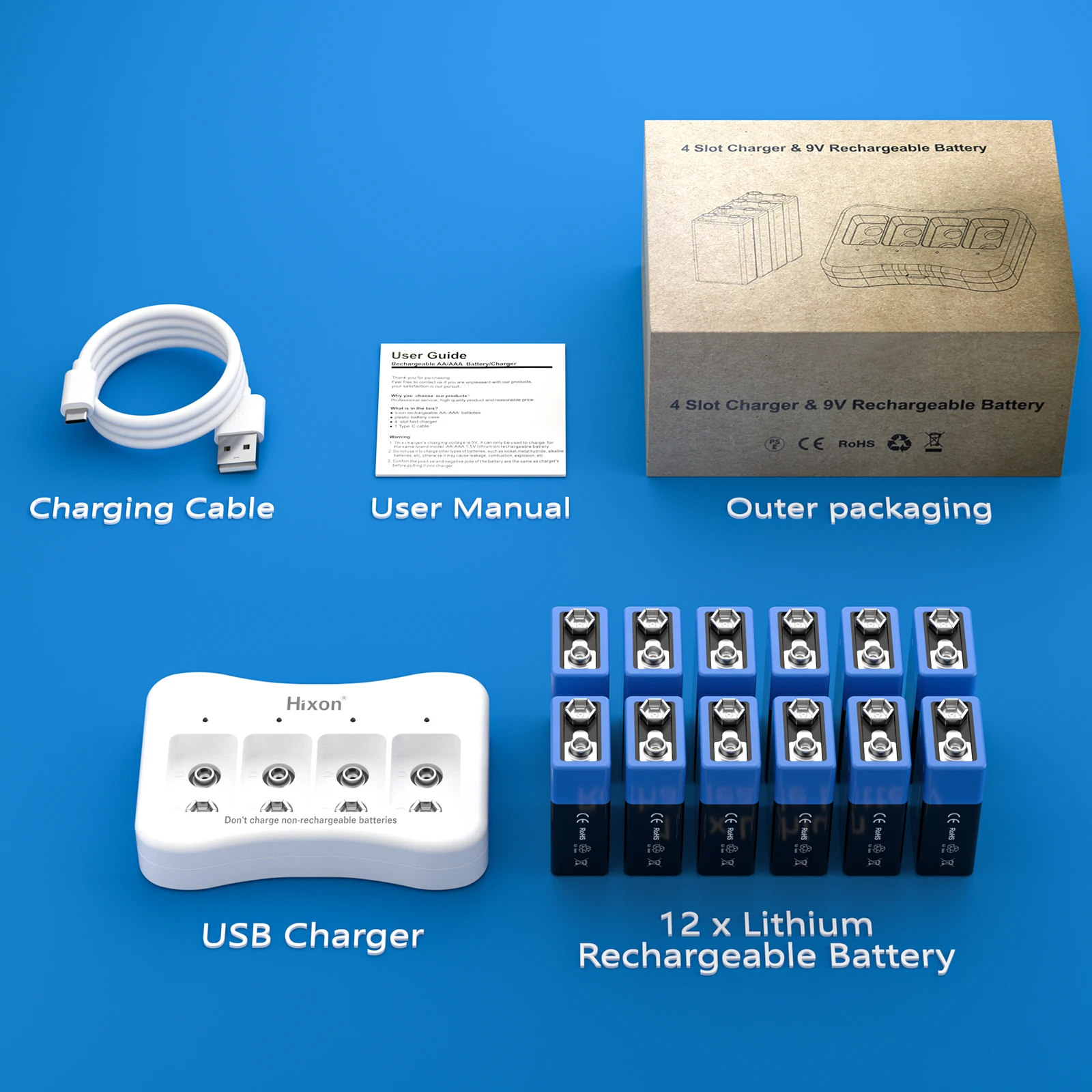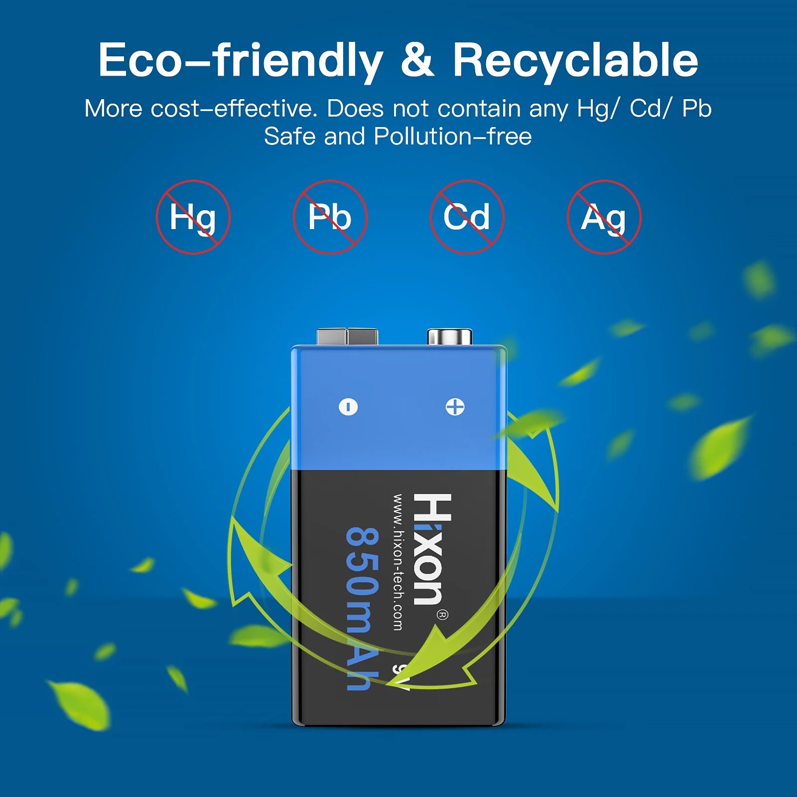 6f22 850mAh 9v Batteria ricaricabile al litio 9V Multimetro Microfono al litio Metal Detector Cavo remoto, Rilevatore di fumo, Artigianale