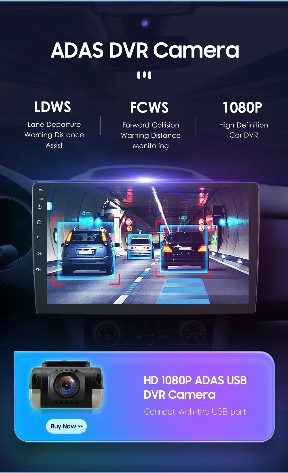 2) ADAS DVR Camera, Tire Pressure Monitoring, OBD2, External Microphone, RCA cable;