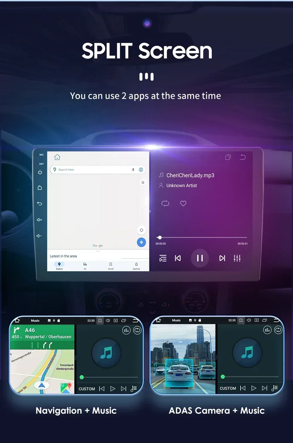 Special Features: Built-In Speaker/Microphone,wifi function,Support steering wheel control,Support 4G Network,Built-in GPS,MP3 players,Voice control,dsp,CarPlay,android auto,Reversing Input,Split Screen