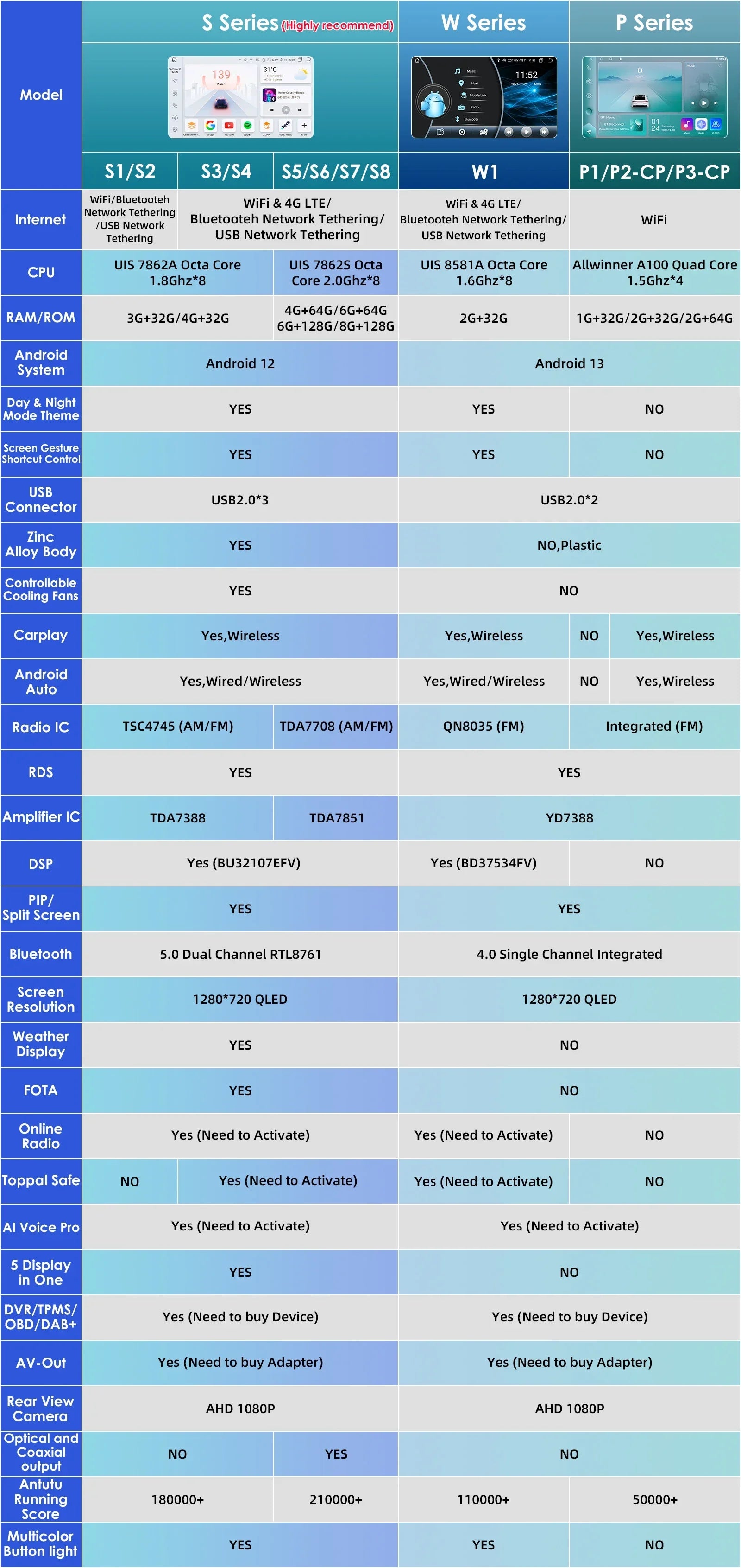 NOTE:This link contains many models. The detailed picture shows the 9/10.1inch S8 model , The other moedel picture not show on this description list ,but you can check the details on follow first picture shwos its functions ,Please choose the model you need before bidding.