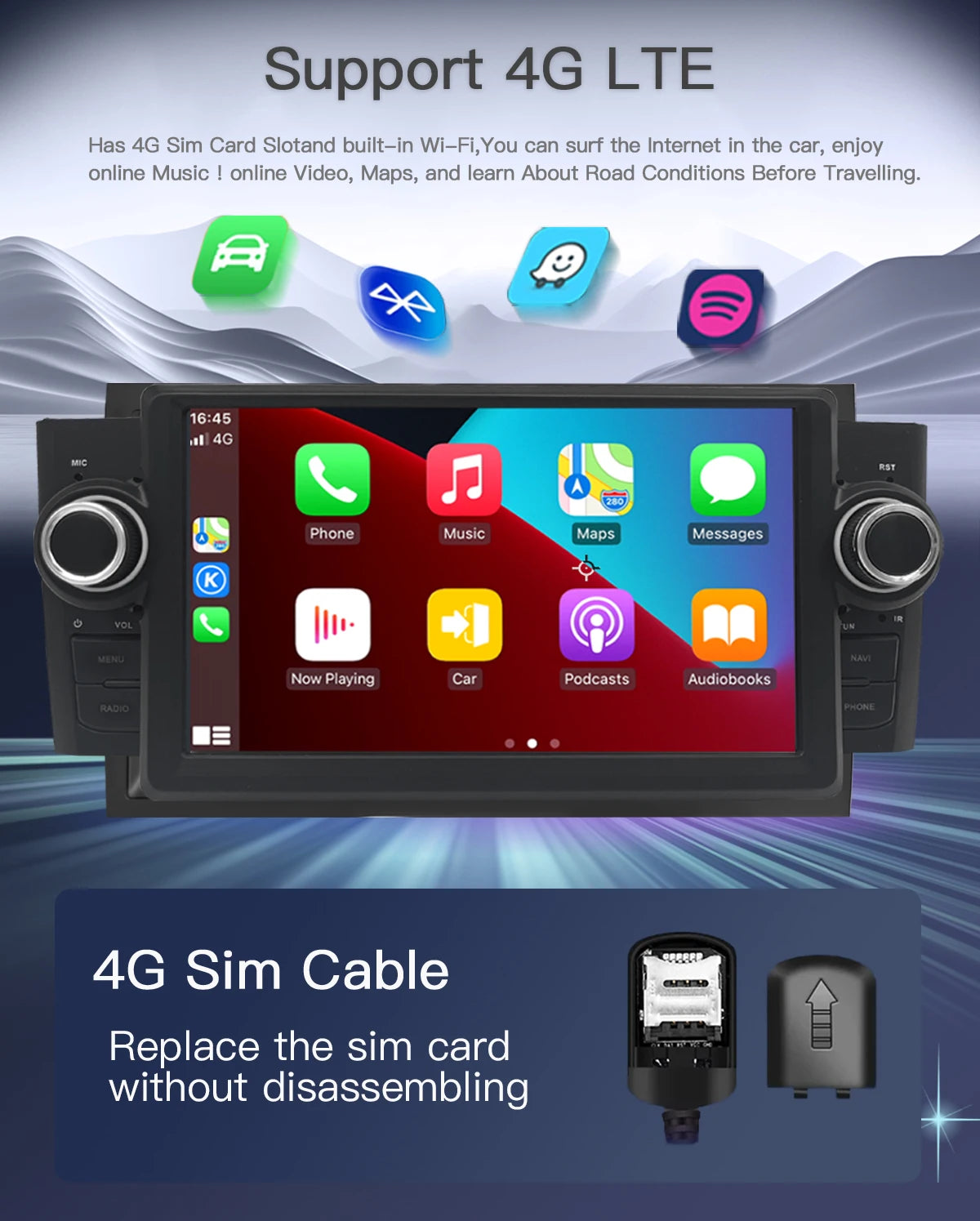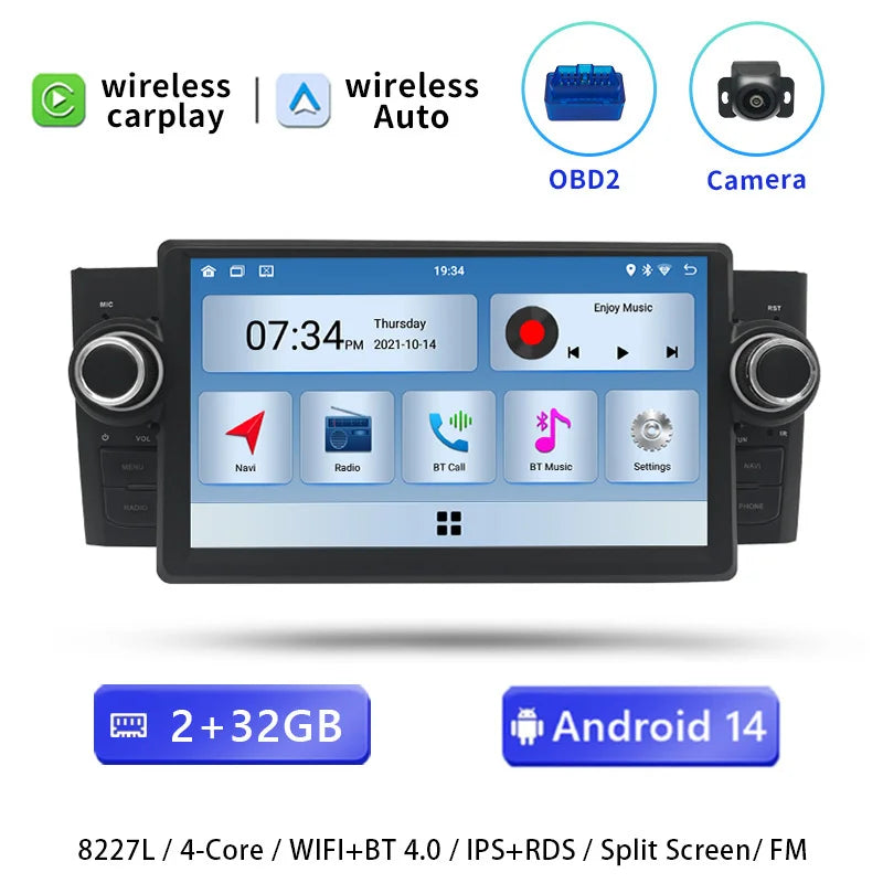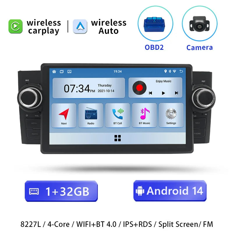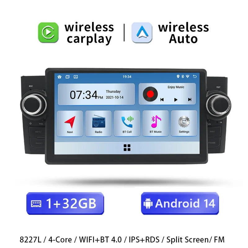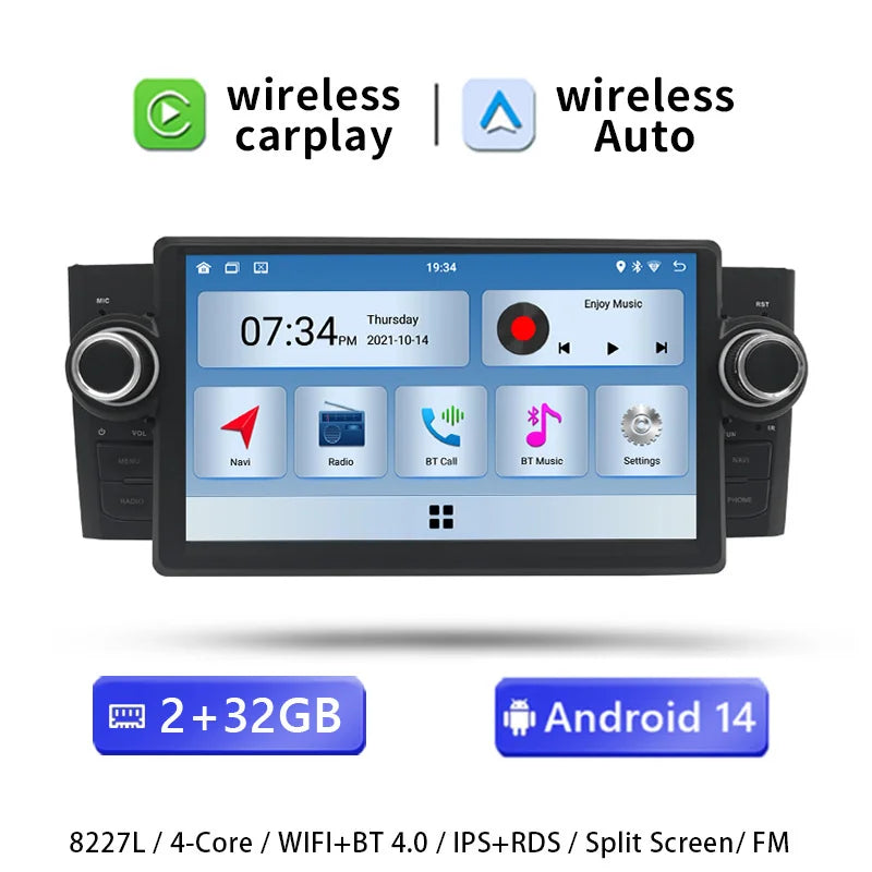 Upgrade your Fiat Grande Punto or Linea (2009-2015) with this 7" Wireless CarPlay AutoRadio featuring Android 14. This 2 din multimedia system offers seamless audio playback, GPS navigation, and RDS functionality, enhancing your driving experience with intuitive control and connectivity. Designed for easy integration, it delivers reliable performance and modern convenience tailored to your vehicle.