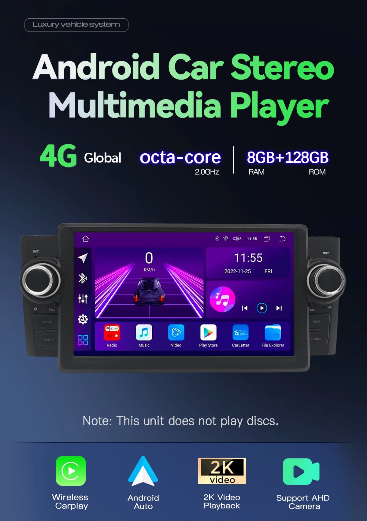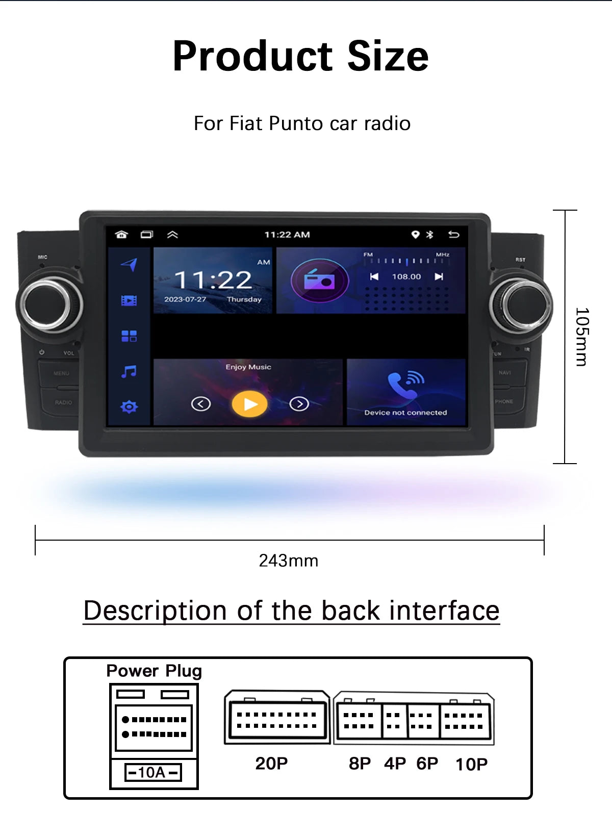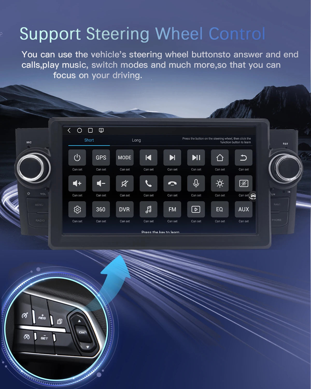 Upgrade your Fiat Grande Punto or Linea (2009-2015) with this 7" Wireless CarPlay AutoRadio featuring Android 14. This 2 din multimedia system offers seamless audio playback, GPS navigation, and RDS functionality, enhancing your driving experience with intuitive control and connectivity. Designed for easy integration, it delivers reliable performance and modern convenience tailored to your vehicle.