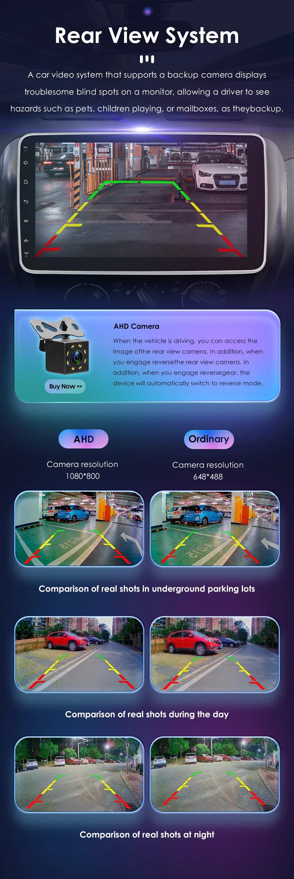Rear View System(Rear View Camera needs to order separately):  A car video system that supports a backup camera displays troublesome blind spots on a monitor , allowing a driver to see hazard such as pets ,children playing ,or mailboxes ,as they backup.