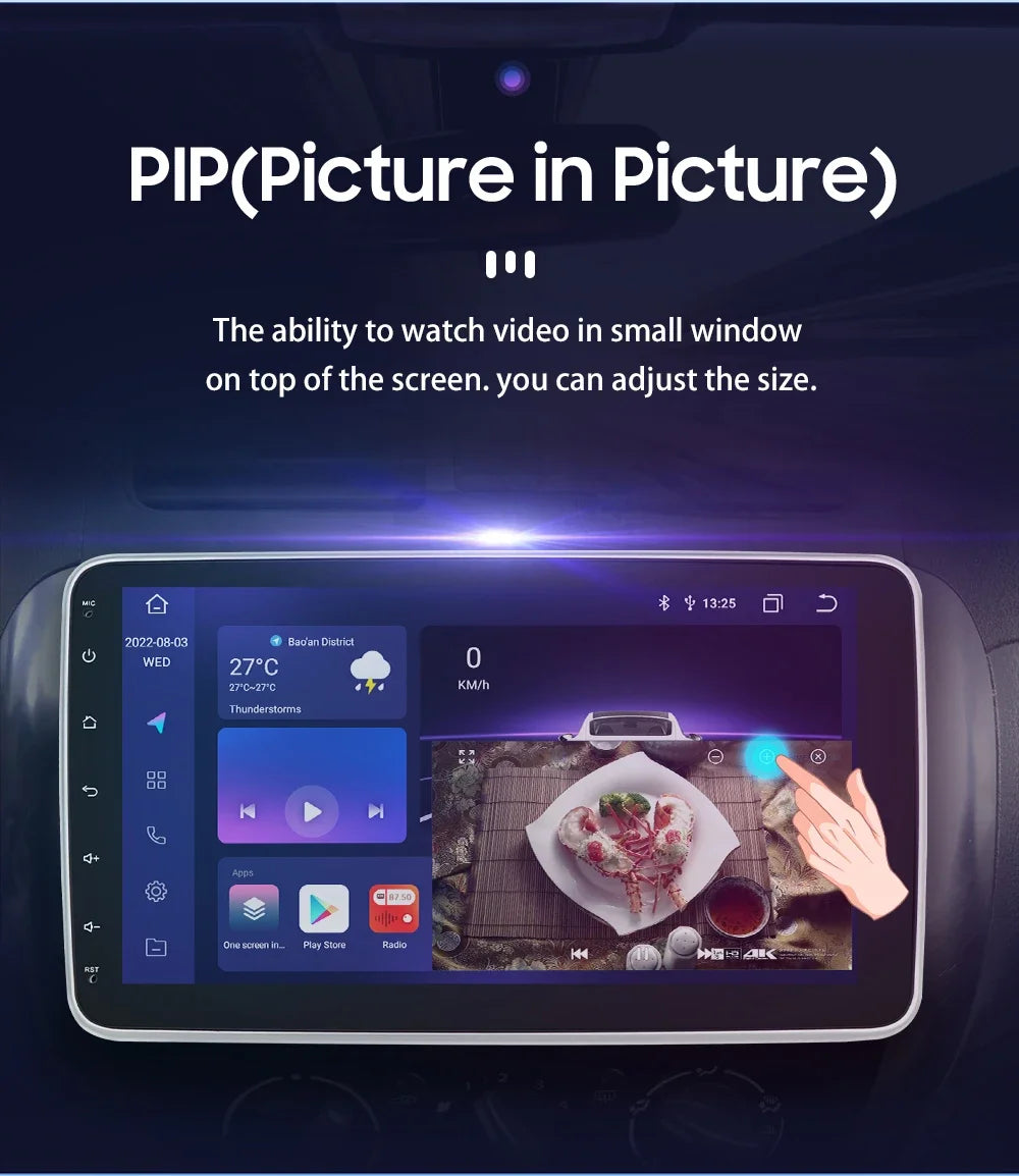 PIP(Picture in Picture): the ability to watch video in small window on top of the screen, you car adjust the size.