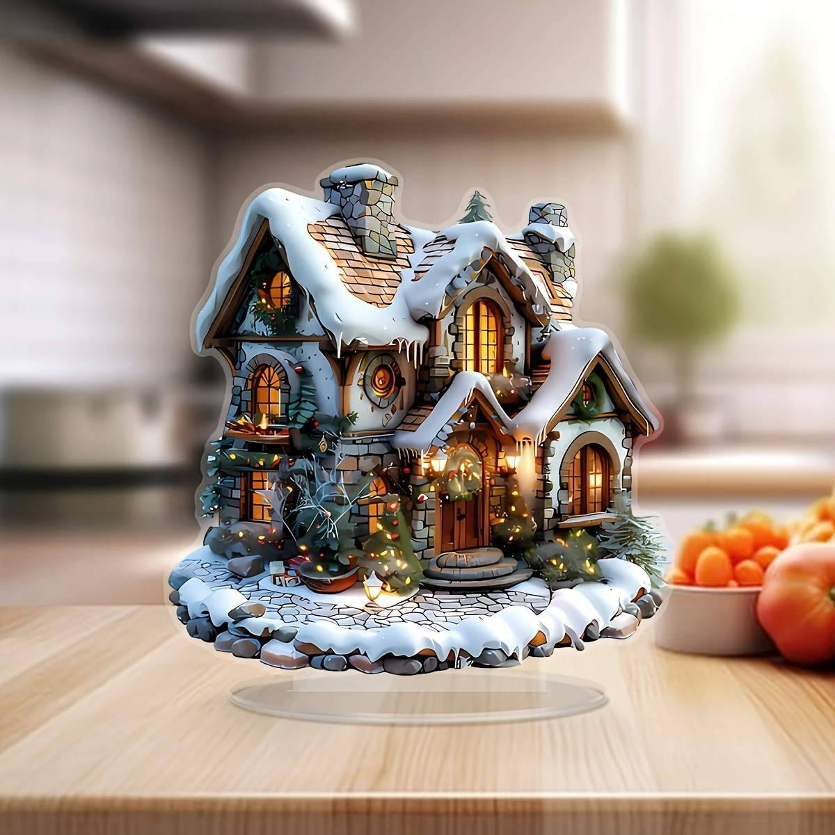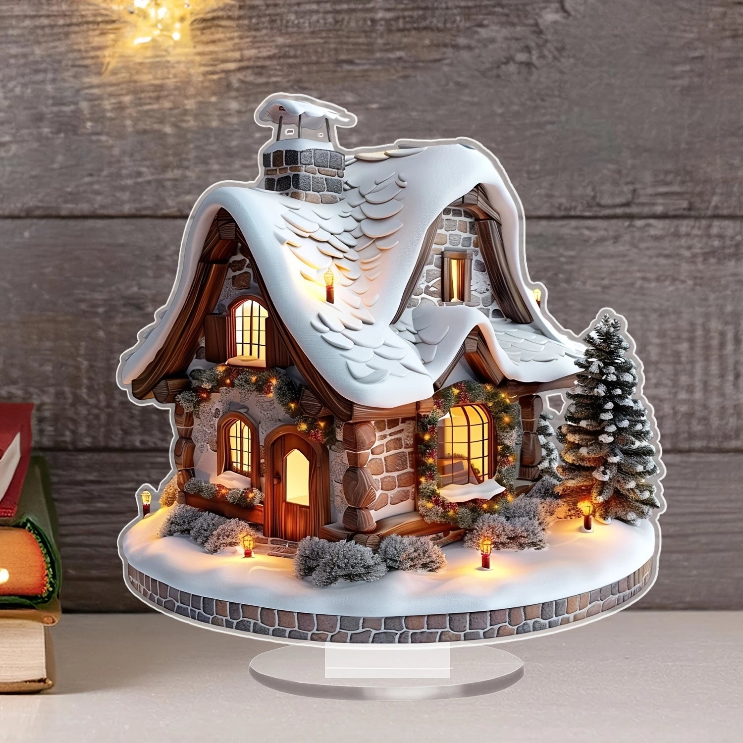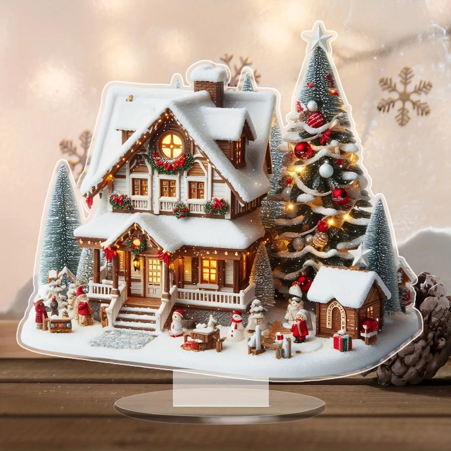 8 pollici 2D colorato casa di neve di Natale decorazione da tavolo in acrilico villaggio di famiglia statua in miniatura regalo a tema casa delle vacanze