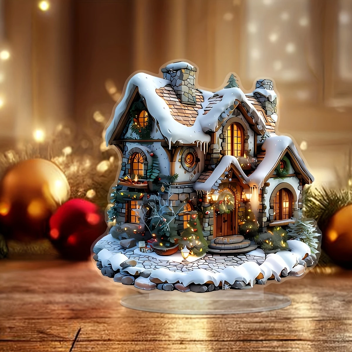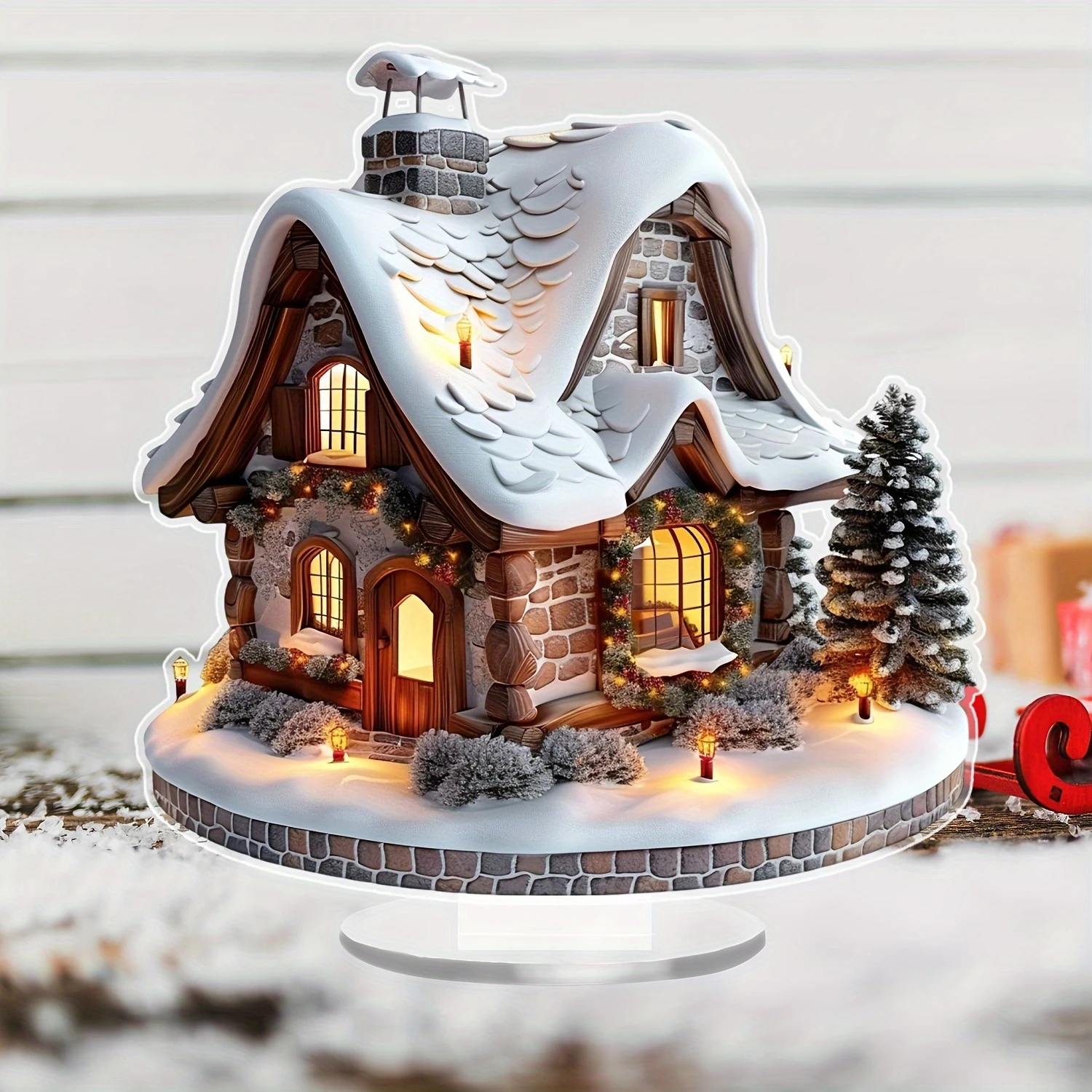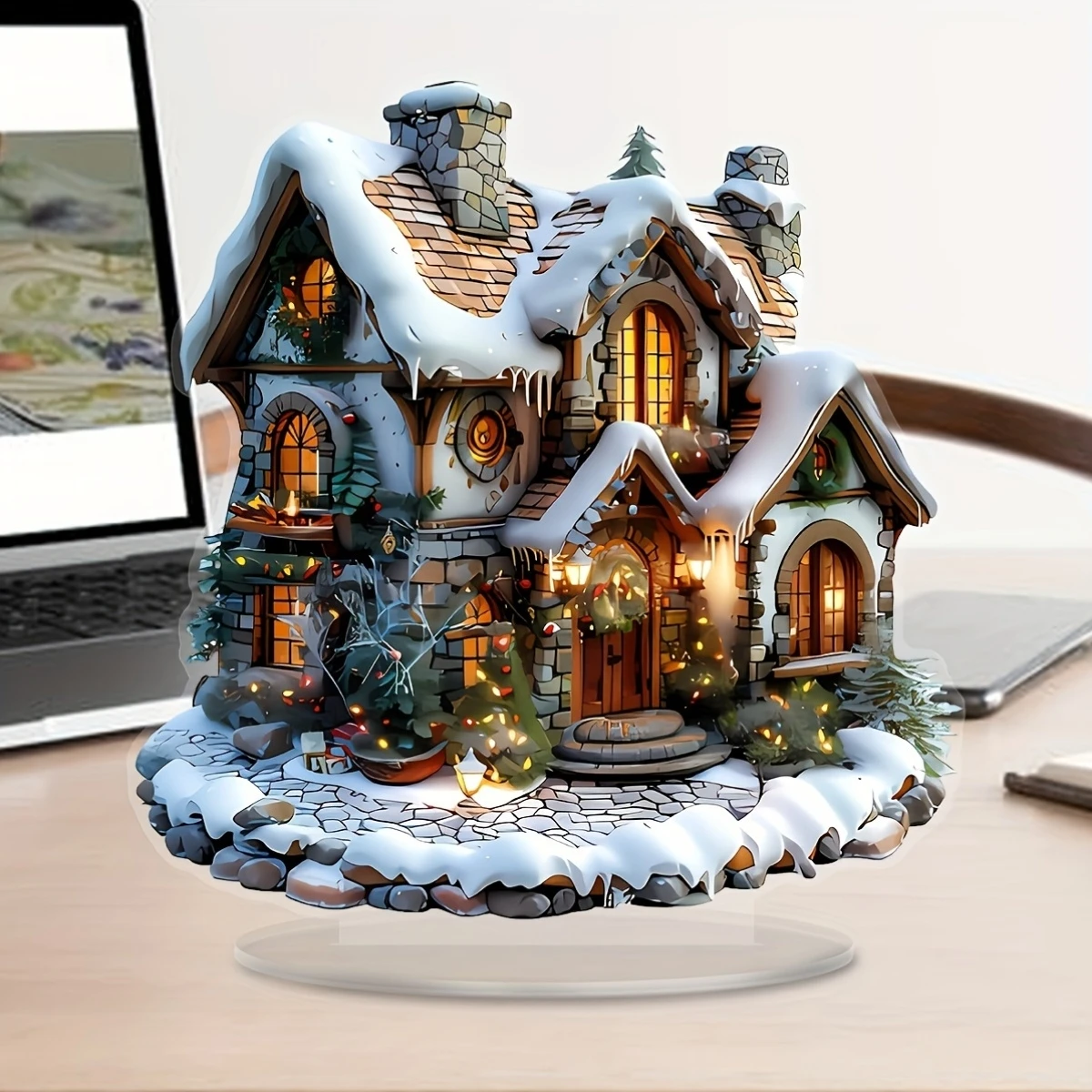 8 pollici 2D colorato casa di neve di Natale decorazione da tavolo in acrilico villaggio di famiglia statua in miniatura regalo a tema casa delle vacanze