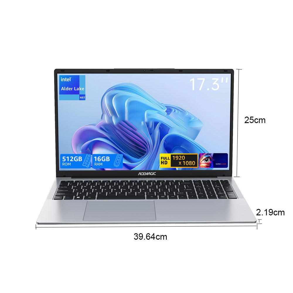 ACEMAGIC Laptop 17,3 Pollici, 16GB DDR4 512GB SSD, Processore N-97 fino a 3,6GHz, Computer Portatile WiFi Wireless 5.0, 3 x USB 3.2