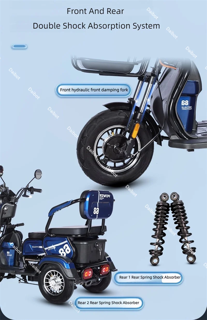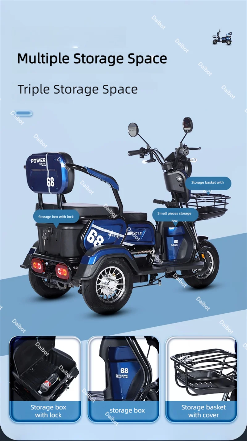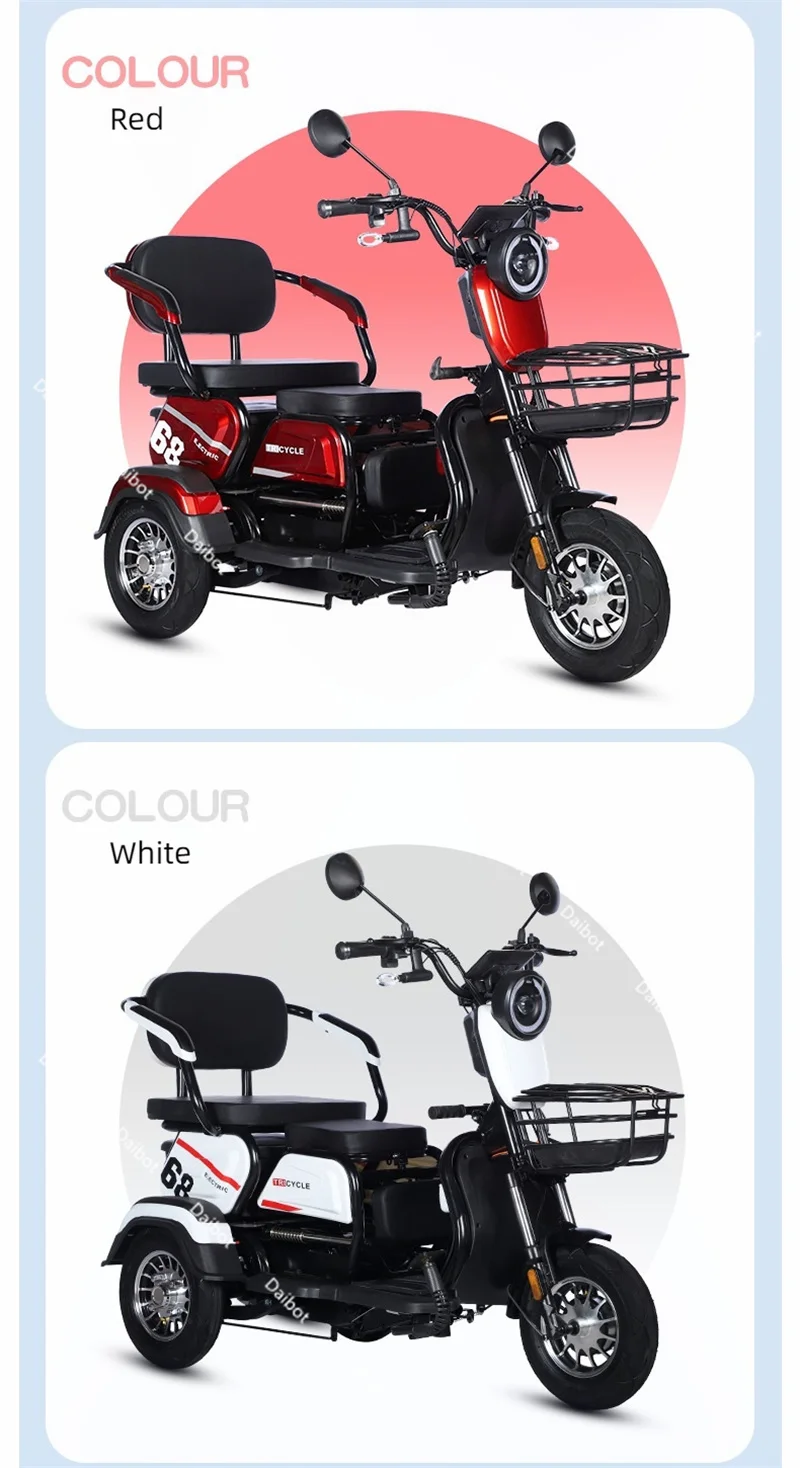 Adult Electric Tricycle Mini Passenger 3 Wheel Electric Scooter 3 Seats For Women Family 600W Powerful Senior Mobility Scooter