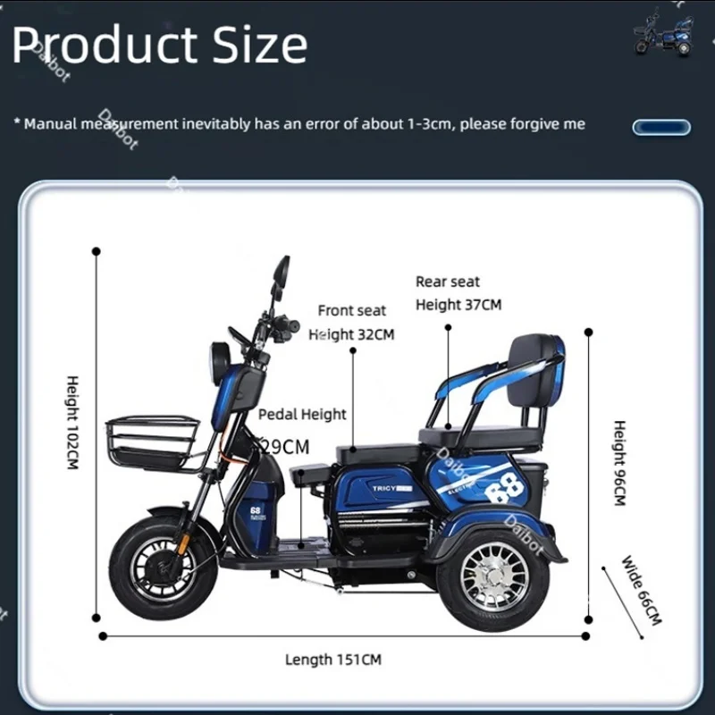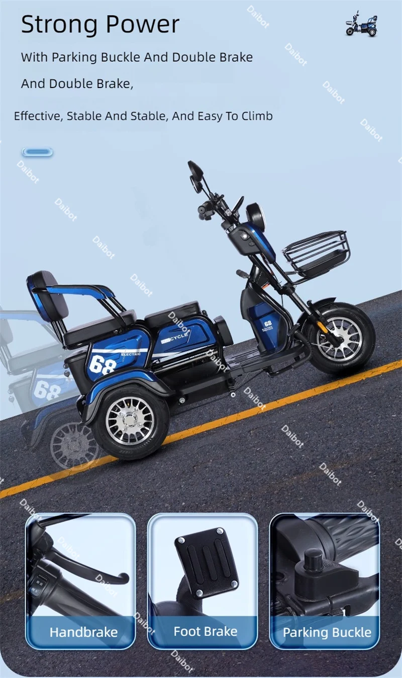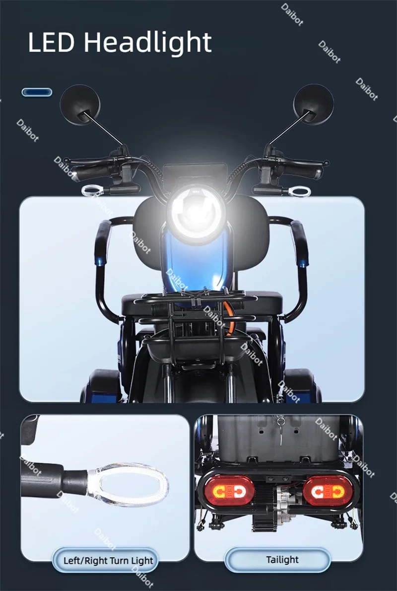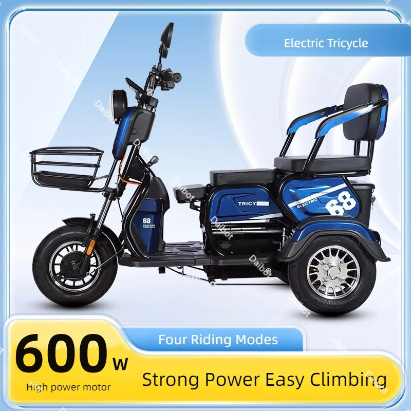 Adult Electric Tricycle Mini Passenger 3 Wheel Electric Scooter 3 Seats For Women Family 600W Powerful Senior Mobility Scooter
