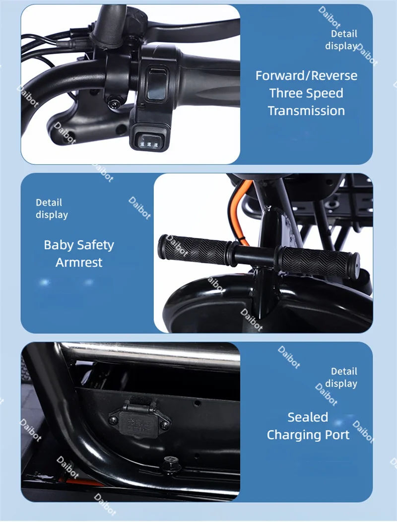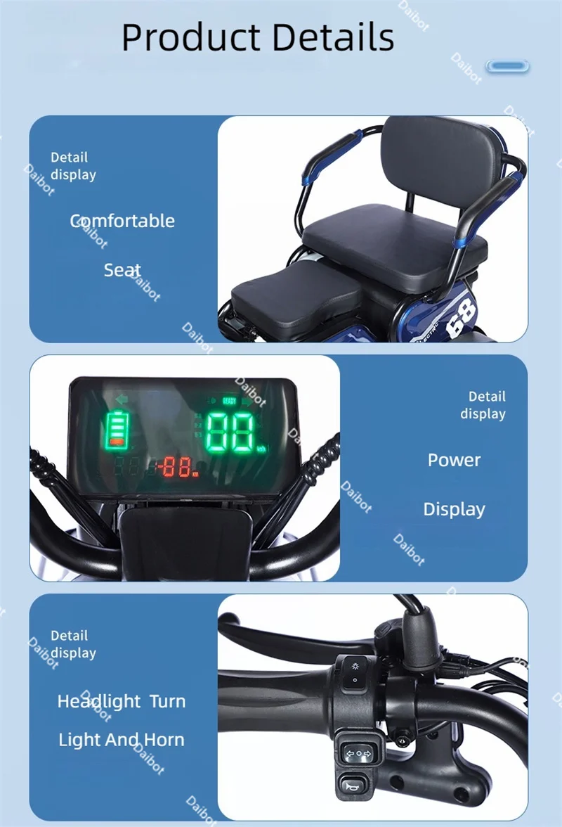 SPECIFICATIONSAssembled: Assembly RequiredBrand Name: NoEnName_NullColor: Black, White, Blue, Red, GreyFeature 1: electric tricycle for 2 adultFeature 10: 3 person electric... Per saperne di più