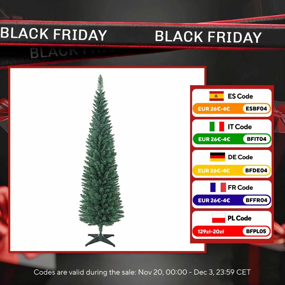 Albero di Natale stretto con rami Supporto in metallo facile da montare per interni verdi