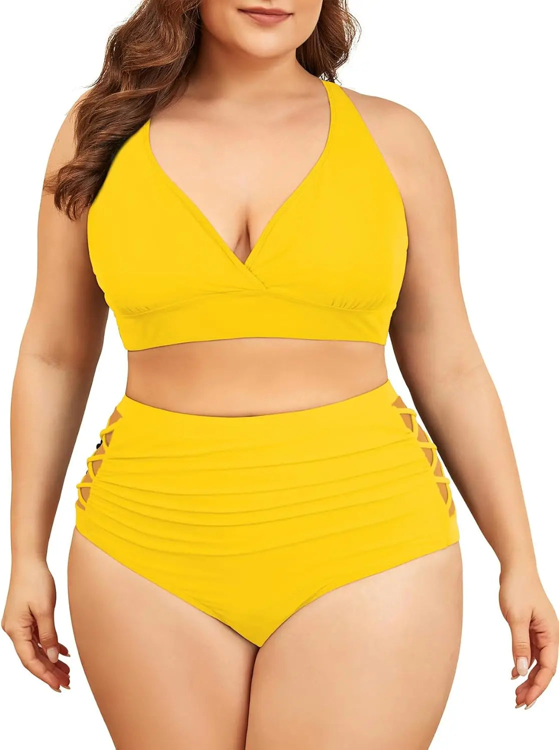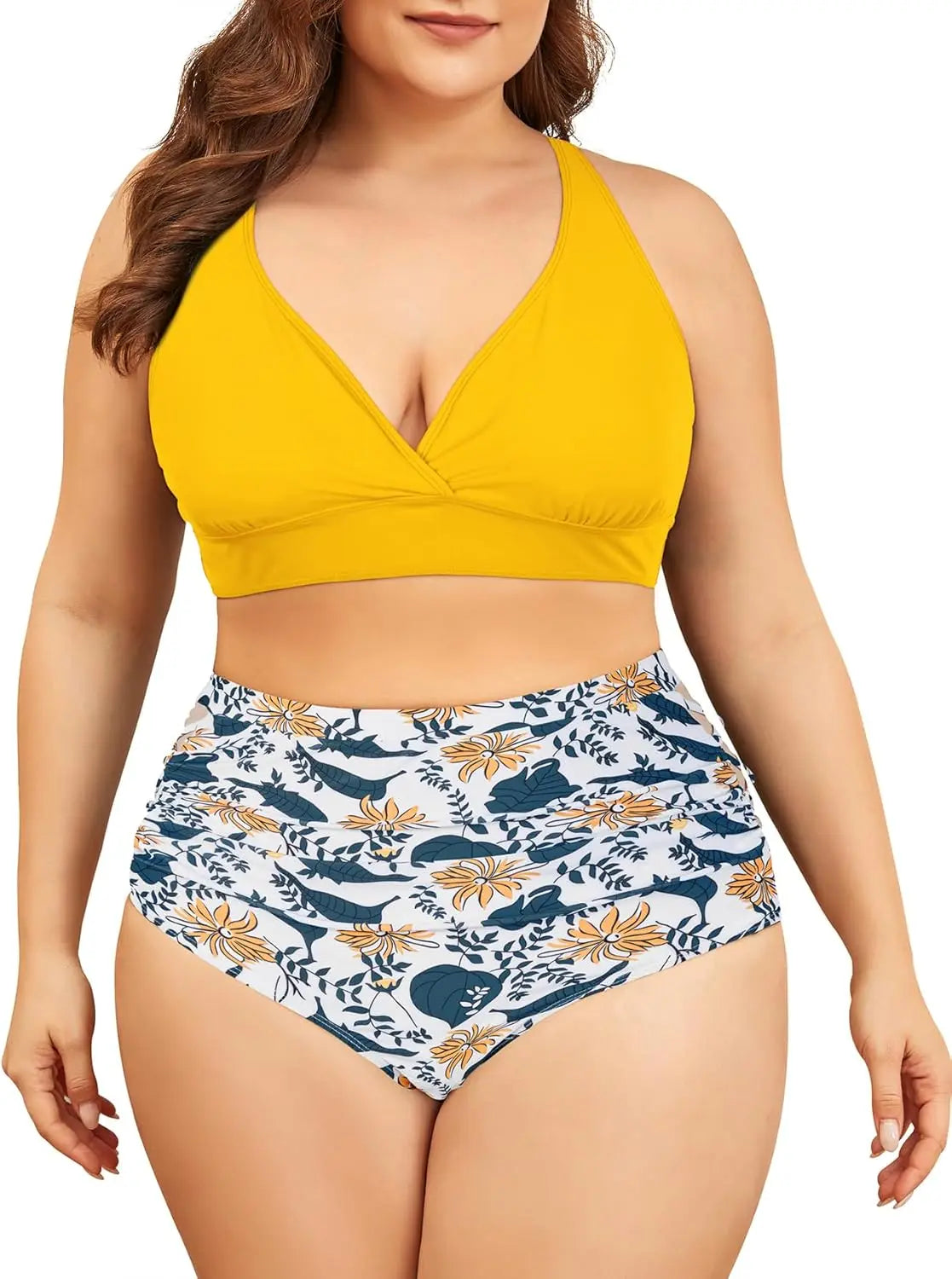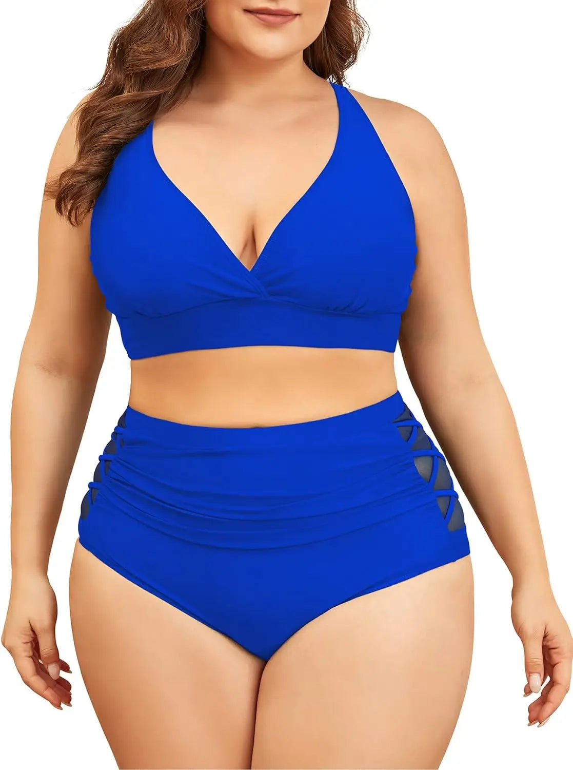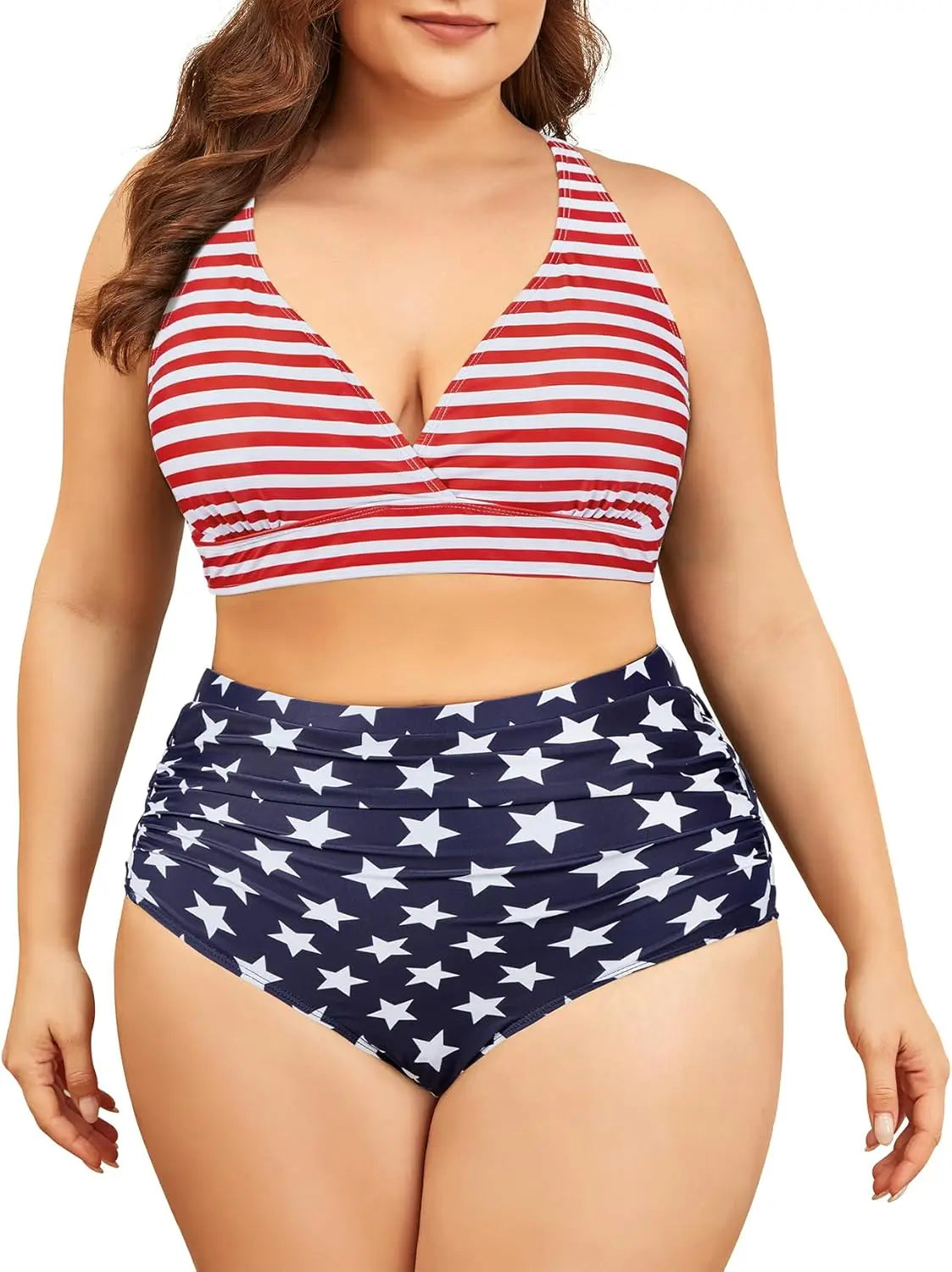 American Trends Womens Plus Size Bikini Two Piece Swimsuits Tummy Control Bathing Suits High Waisted Bikini Swimwear