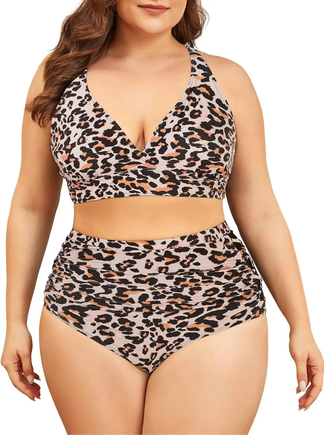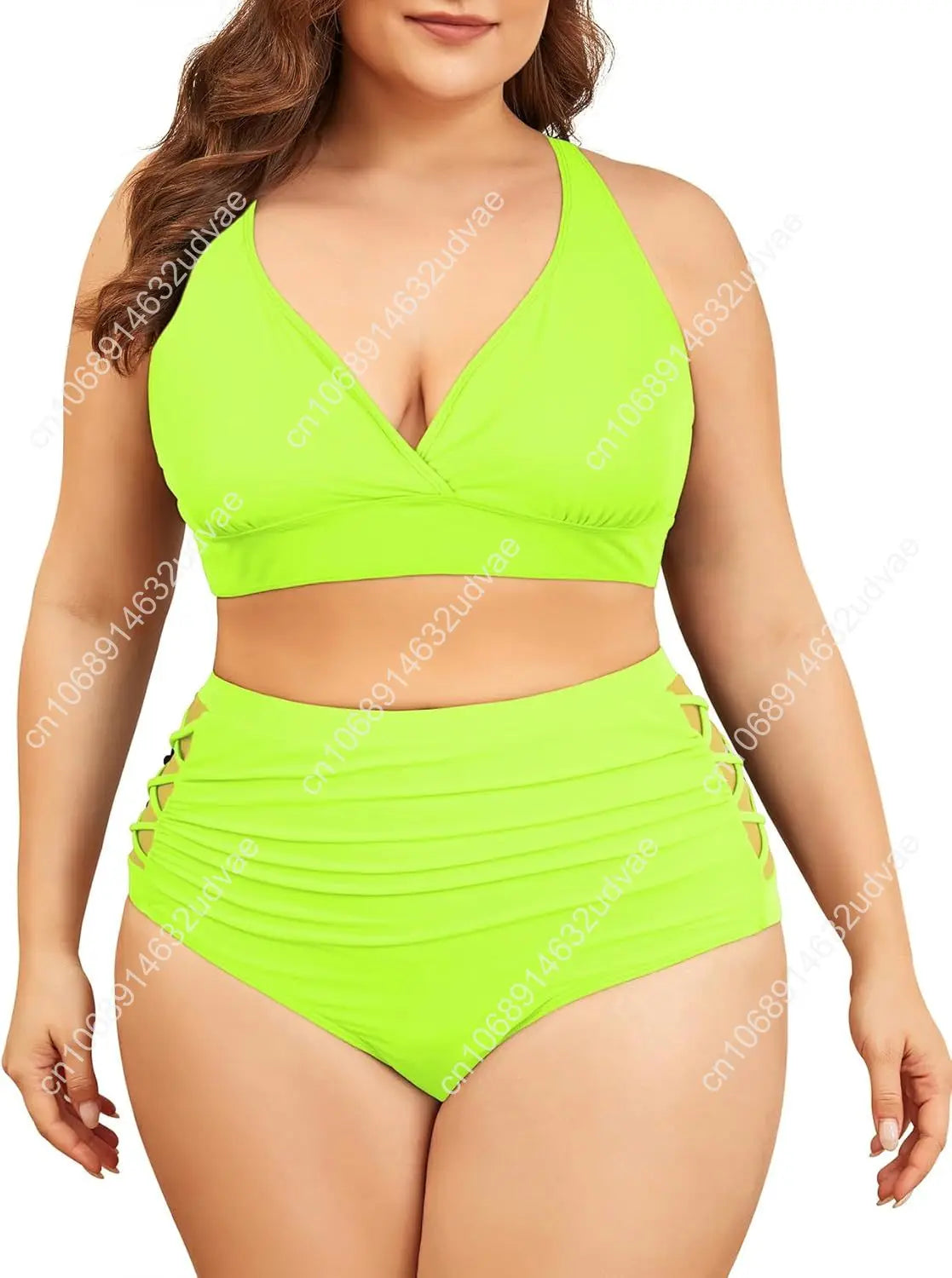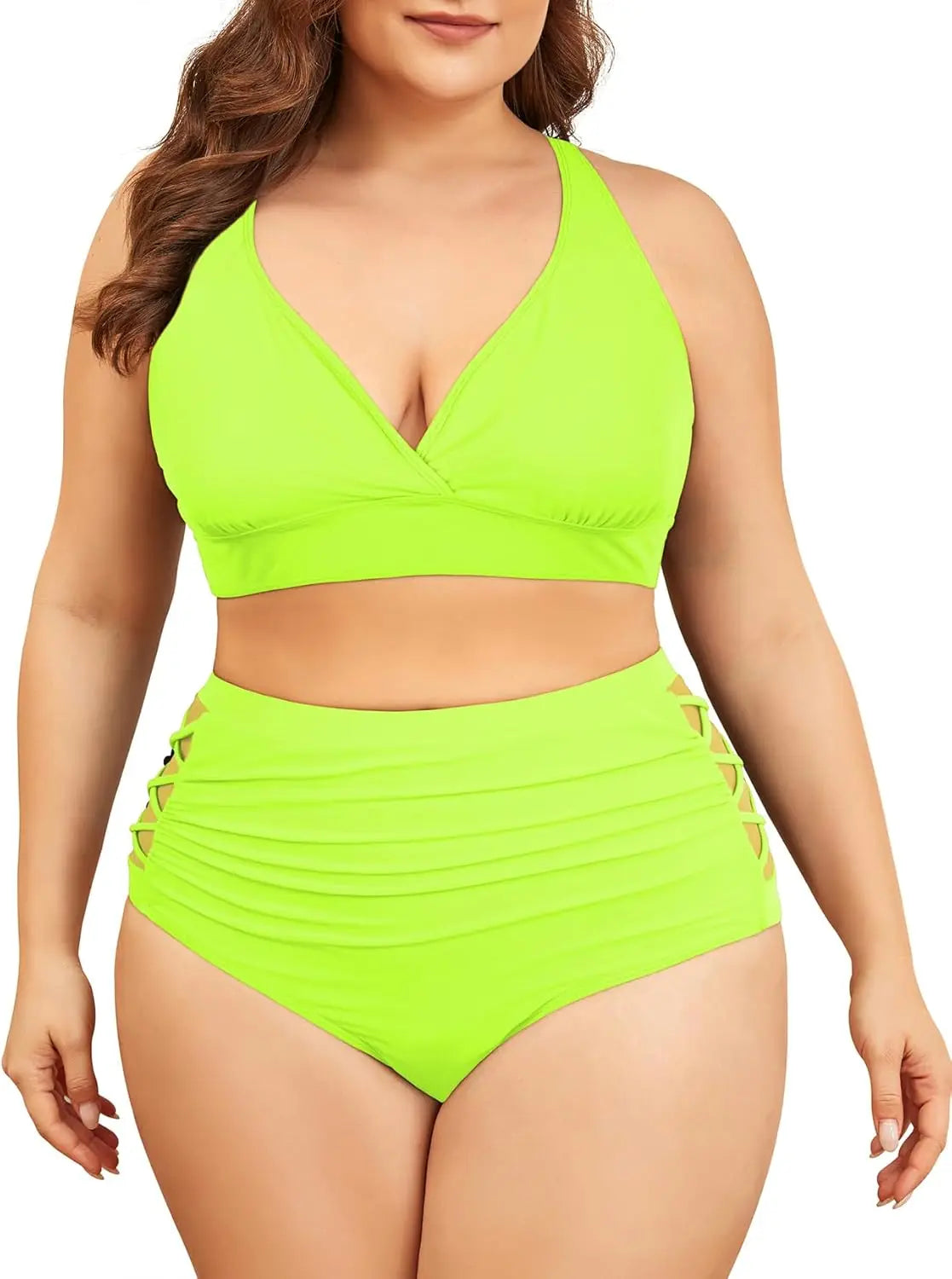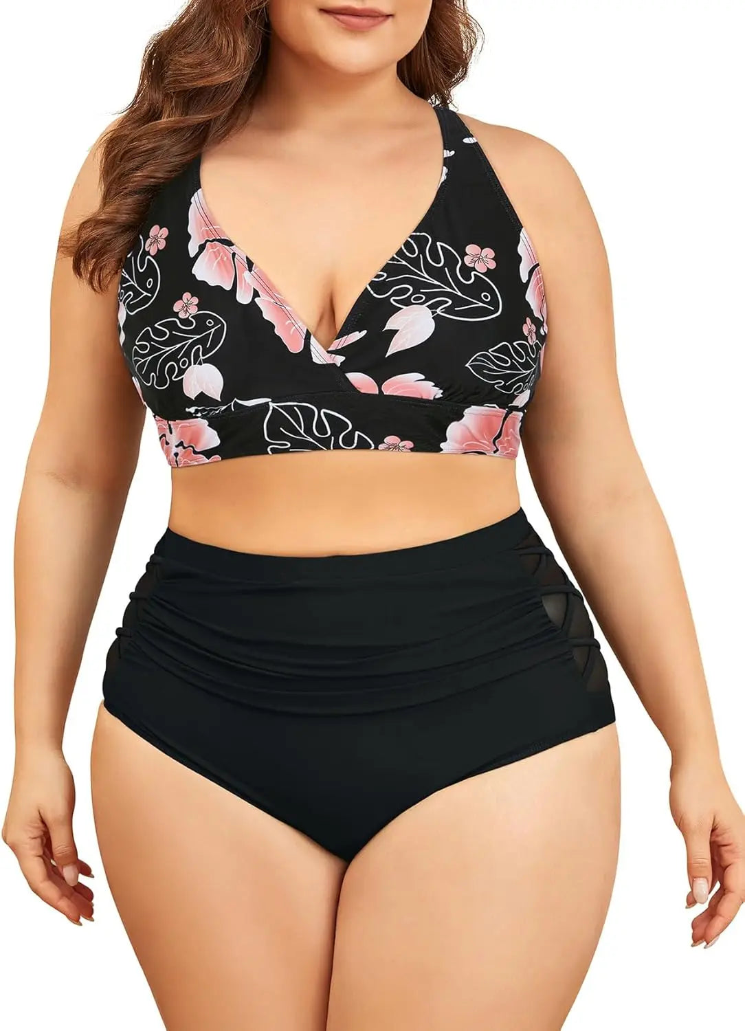 American Trends Womens Plus Size Bikini Two Piece Swimsuits Tummy Control Bathing Suits High Waisted Bikini Swimwear