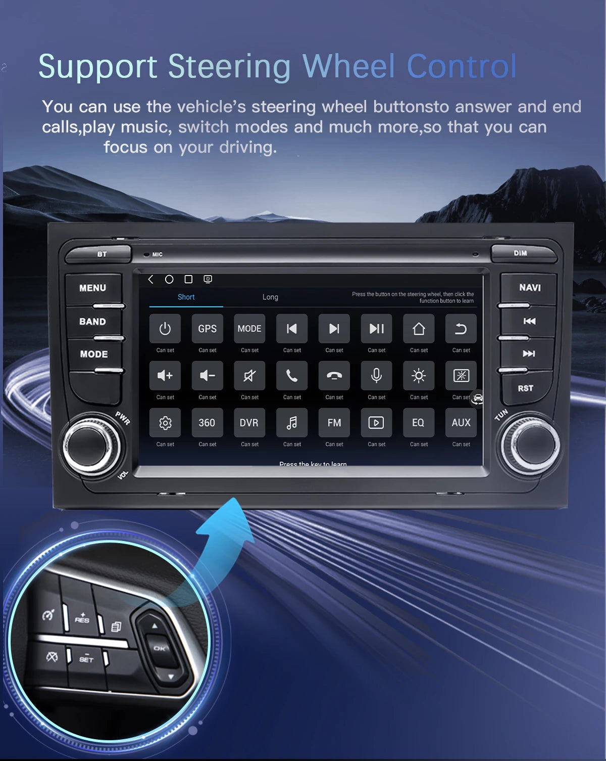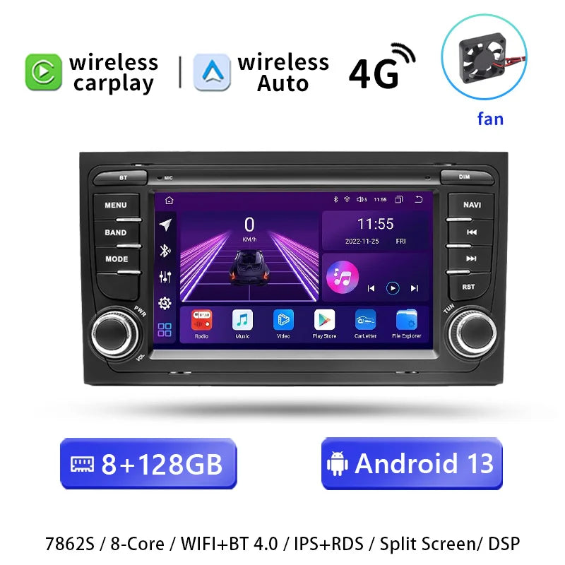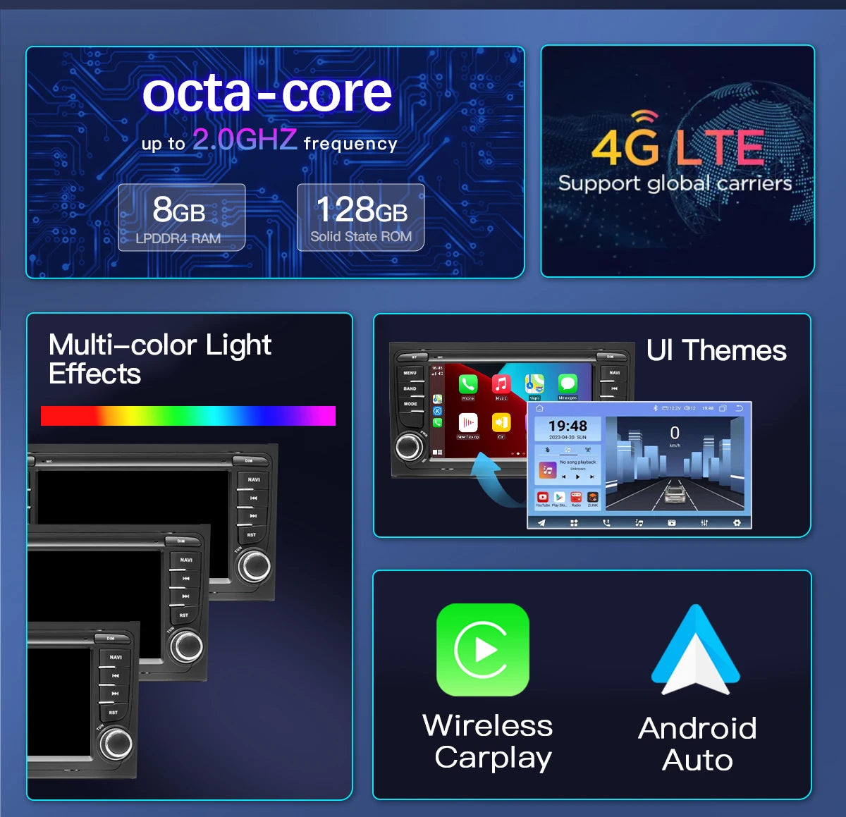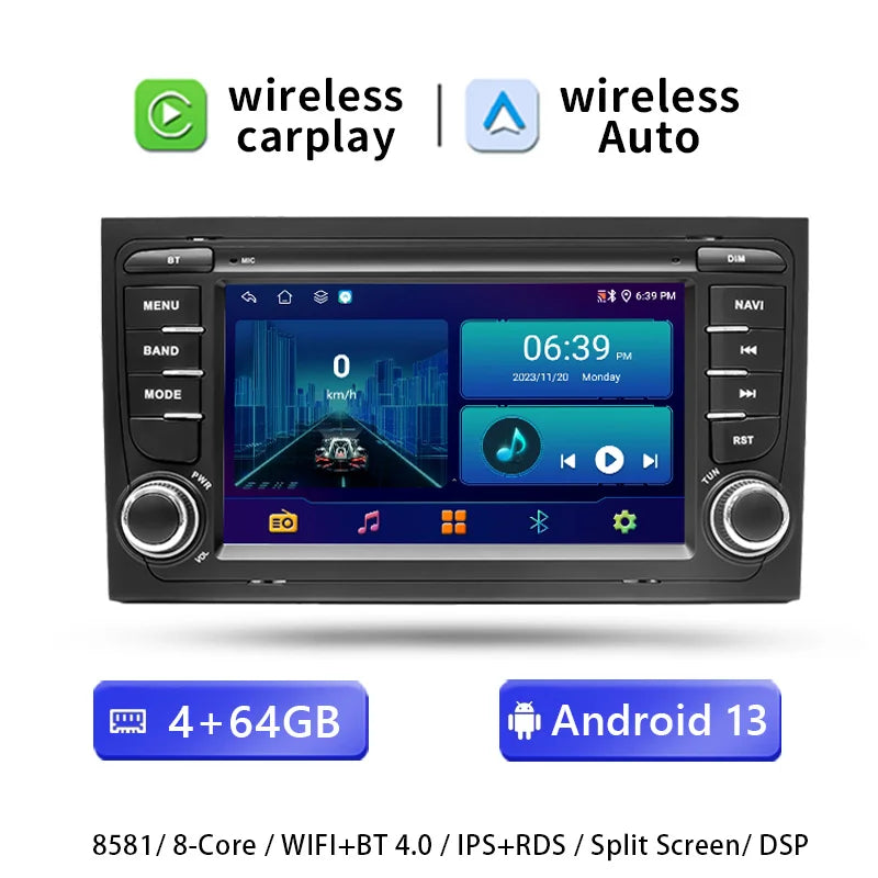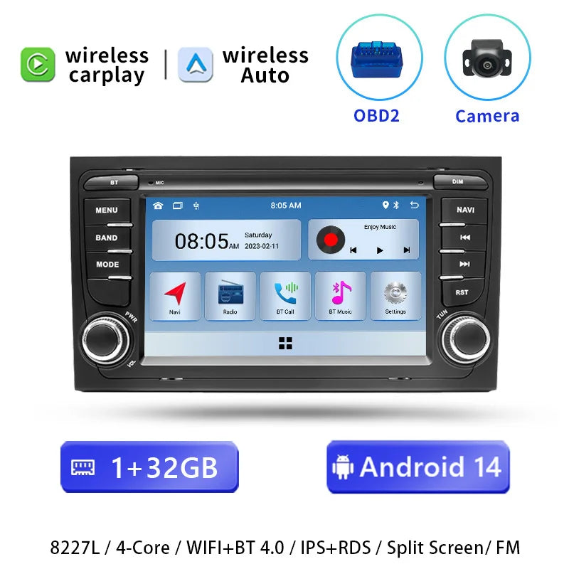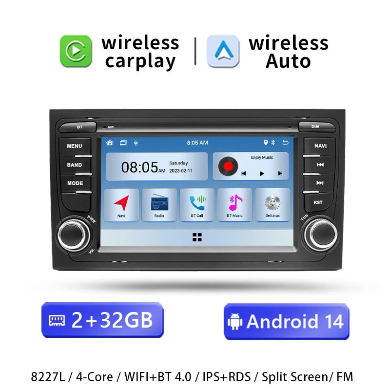Upgrade your Audi A4 B6, B7, S4 B7, RS4, or Seat Exeo (2002-2012) with this Android 14 AutoRadio. Designed for seamless integration, it offers advanced GPS navigation, CarPlay compatibility, and multimedia features to enhance your driving experience. Enjoy intuitive controls, crisp display, and reliable connectivity tailored for your vehicle model. This stereo system combines modern technology with perfect fitment, ensuring both functionality and style on the road.