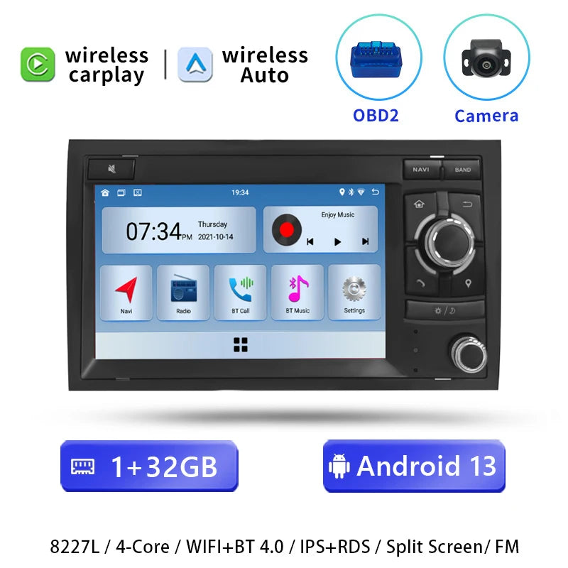Android 14 Wireless Carplay 8G 128G Car Multimedia For Audi A4 B8 B6 B7 S4 B7 B6 RS4 B7 SEAT Exeo 7" Navigation AutoRadio