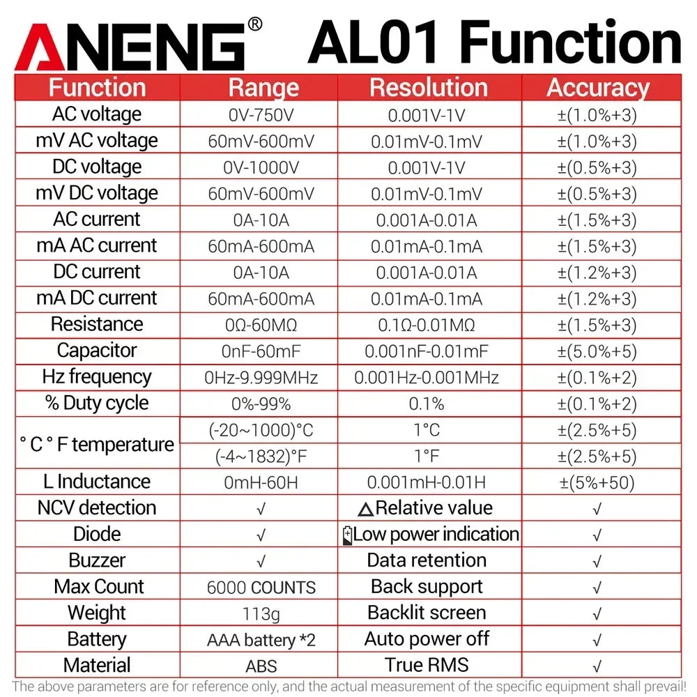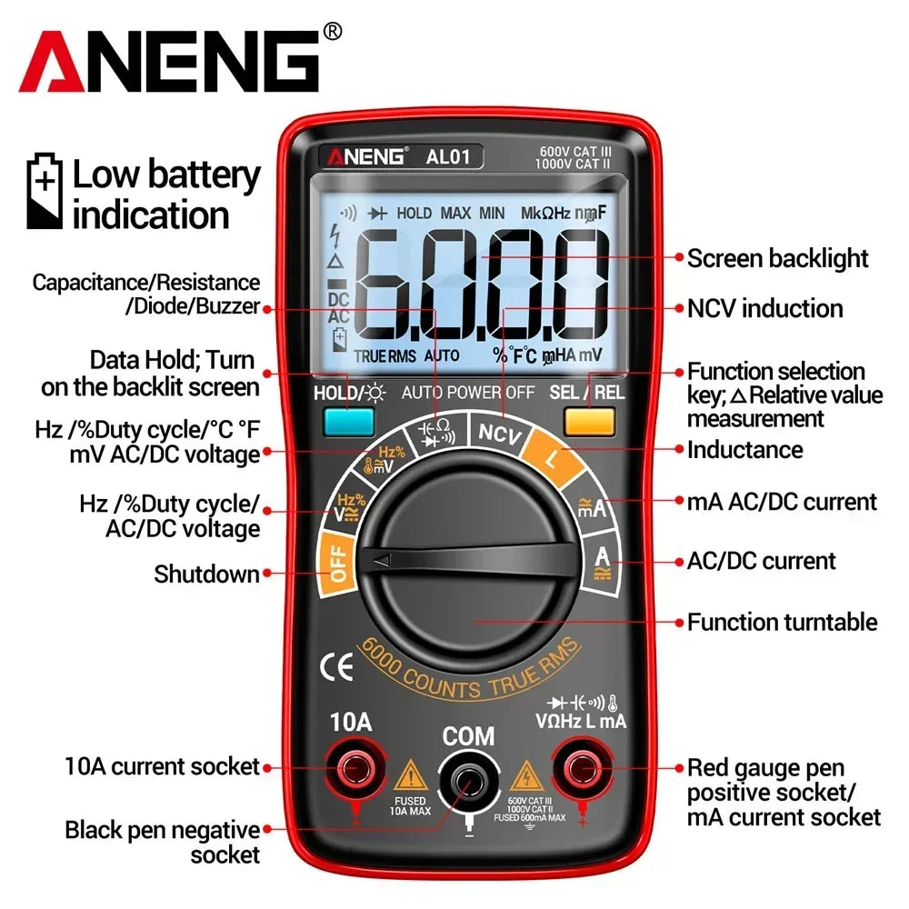 ANENG AL01 6000 Counts True-RMS AC/DC Voltage Meter Current Tester Professional Electrician Inductance Digital Multimeter Tools