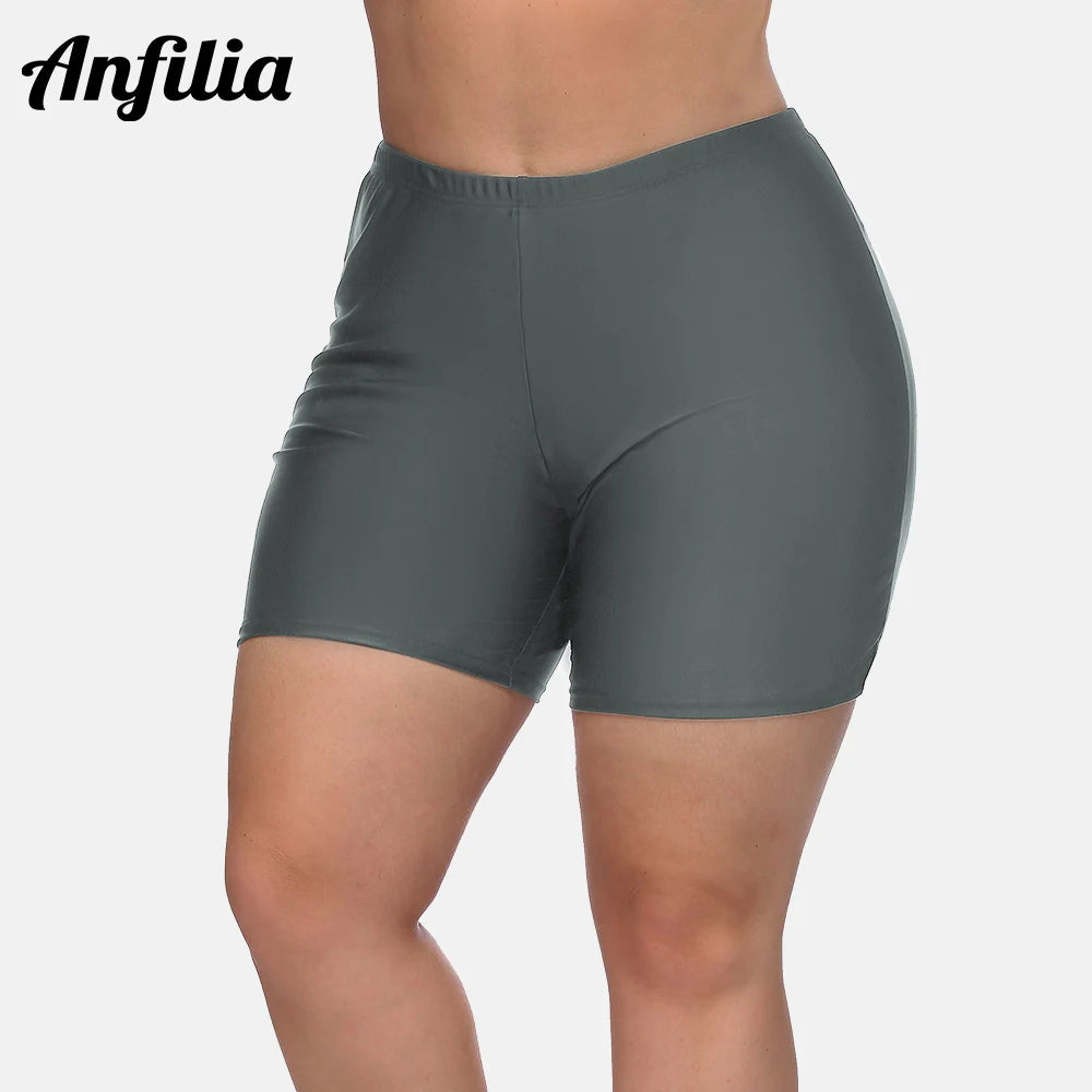 Anfilia Women High Waist Plus Size Swimming Shorts Ladies Plus Size Bikini Bottom Swimwear Briefs Boardshort Swimming Trunks