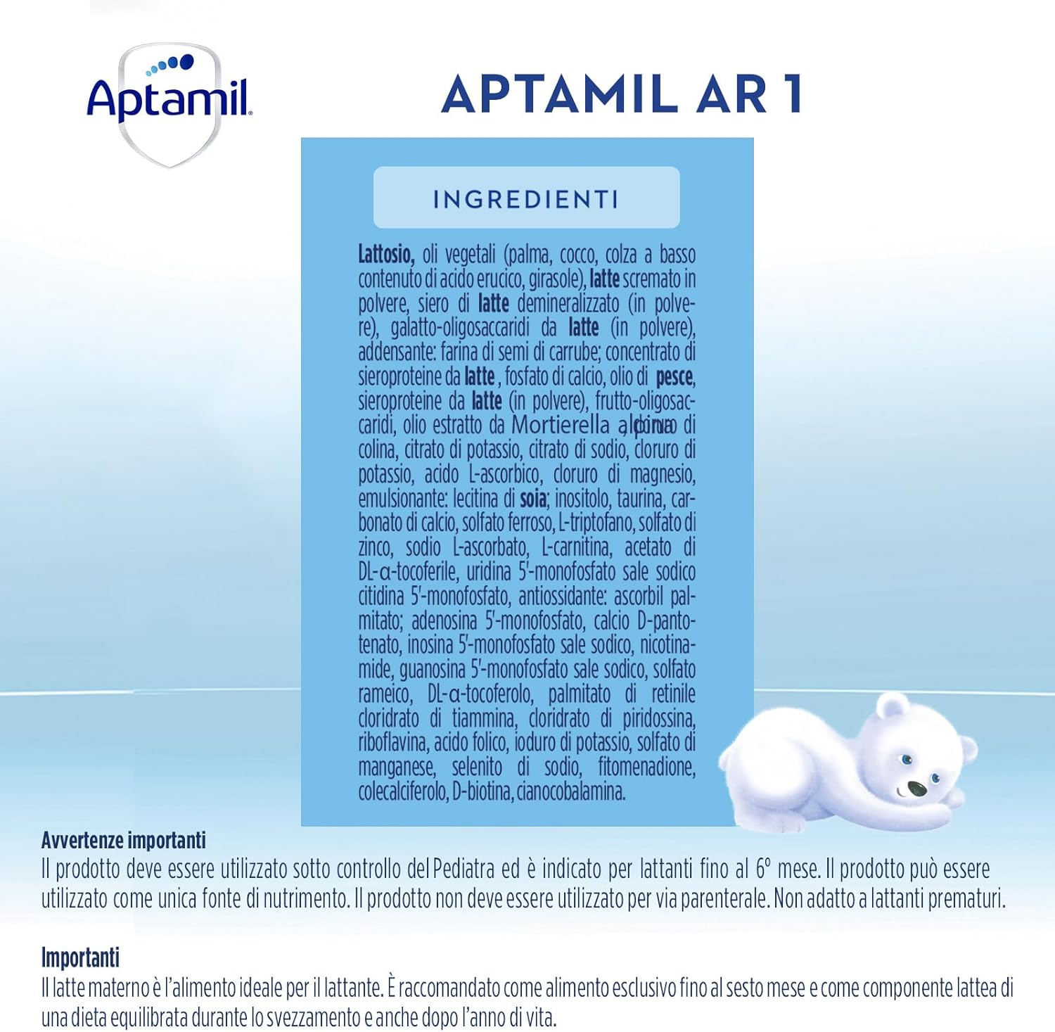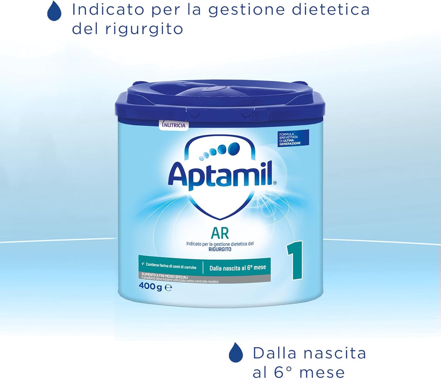 Aptamil AR1, Latte Antirigurgito in Polvere per Neonati dalla Nascita al 6° mese compiuto, Confezione da 400g