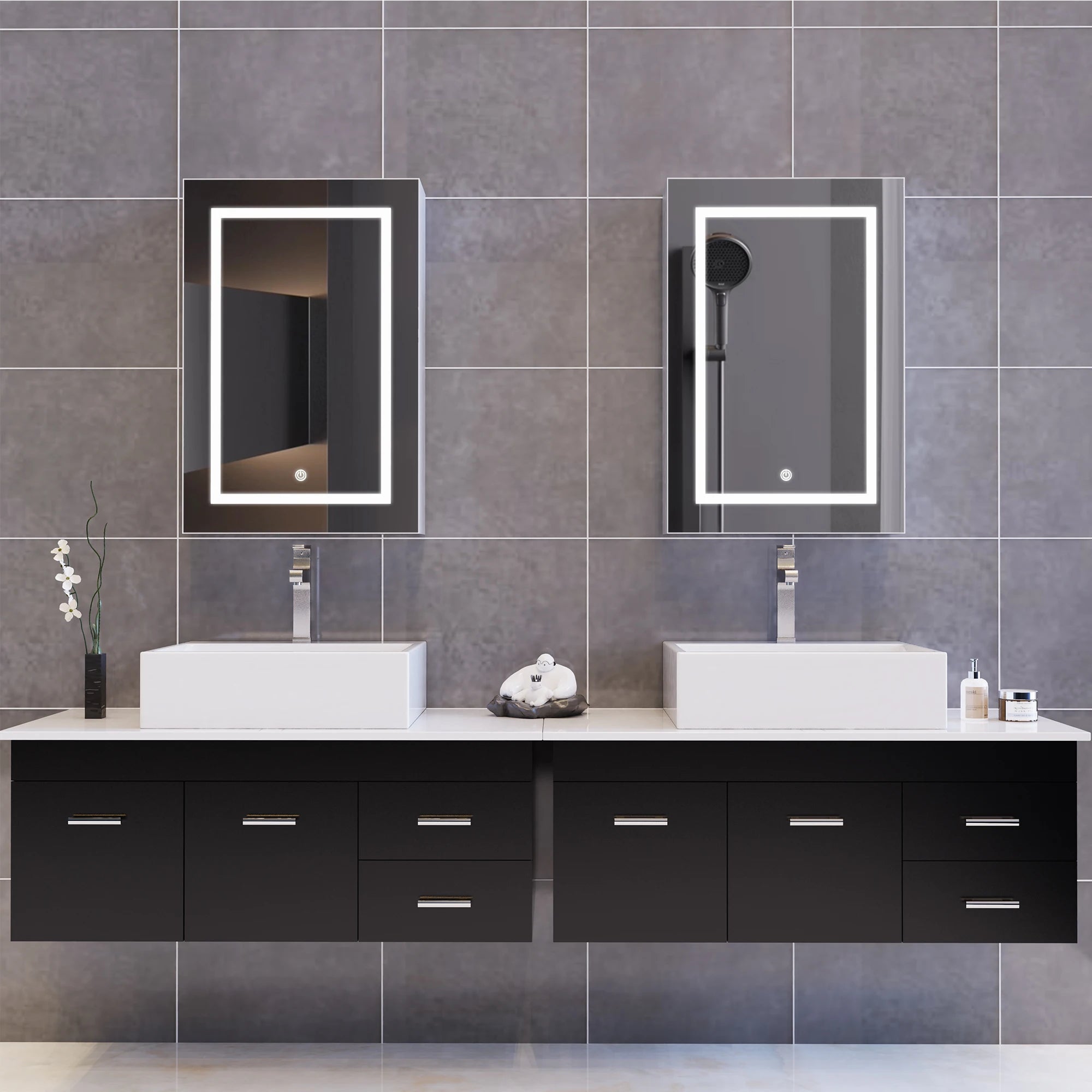 Specchio per bagno con armadietto e LED:Armadietto da bagno a parete, luminosità regolabile, tre tonalità di luce: fredda, calda, naturale, con 3 modalità di illuminazione da 3000 K a 6500 K. Basta toccare l'interruttore blu sullo specchio per accendere la luce LED, chiaramente visibile anche di notte.Premere brevemente per alternare tra questi tre tipi di luci, tenere premuto per regolare la luminosità della luce.