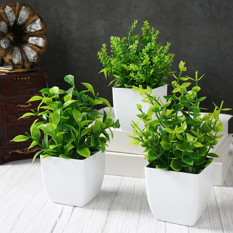 Artificial Plants Potted Green Bonsai Small Tree Grass Plant Pot Ornament Fake Flower for Home Garden Decor Wedding Party Decor