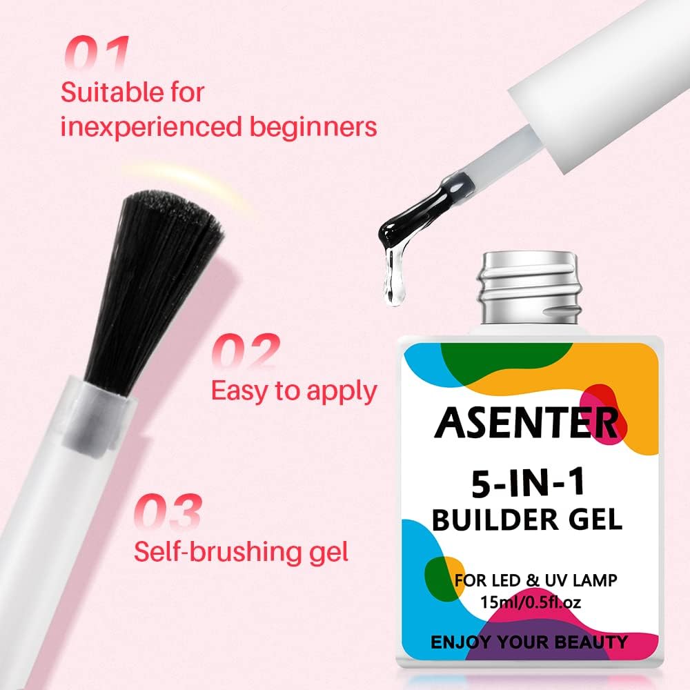 ASENTER Gel Ricostruzione Unghie, autolivellante, Base Rubber Gel Costruttore Per Unghie Rinforzante Base Gel Semipermanente Trasparente 15ml