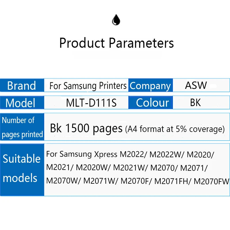 ASW D111 MLT D111S 111 Toner Cartridge Compatible for samsung Xpress M2070 M2070FW M2071FH M2020 M2020W M2021 M2022 with chip