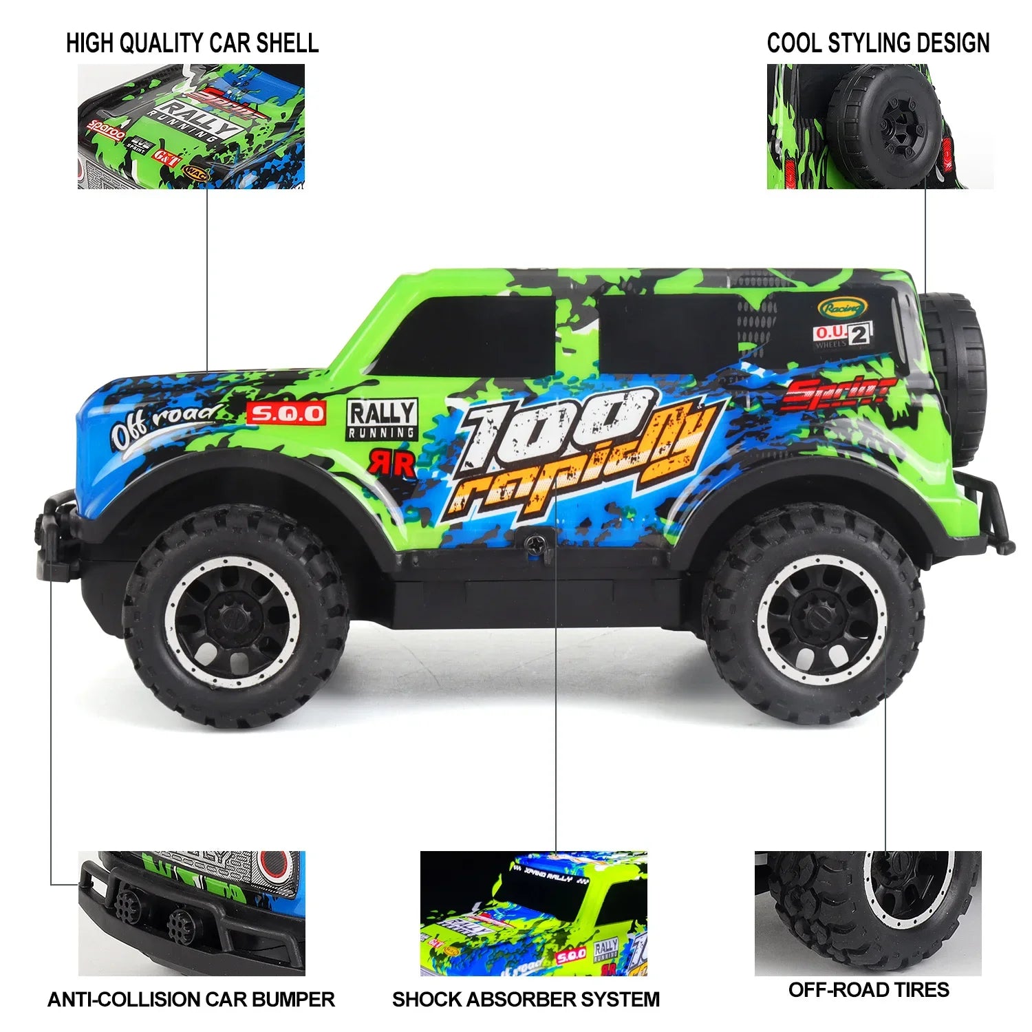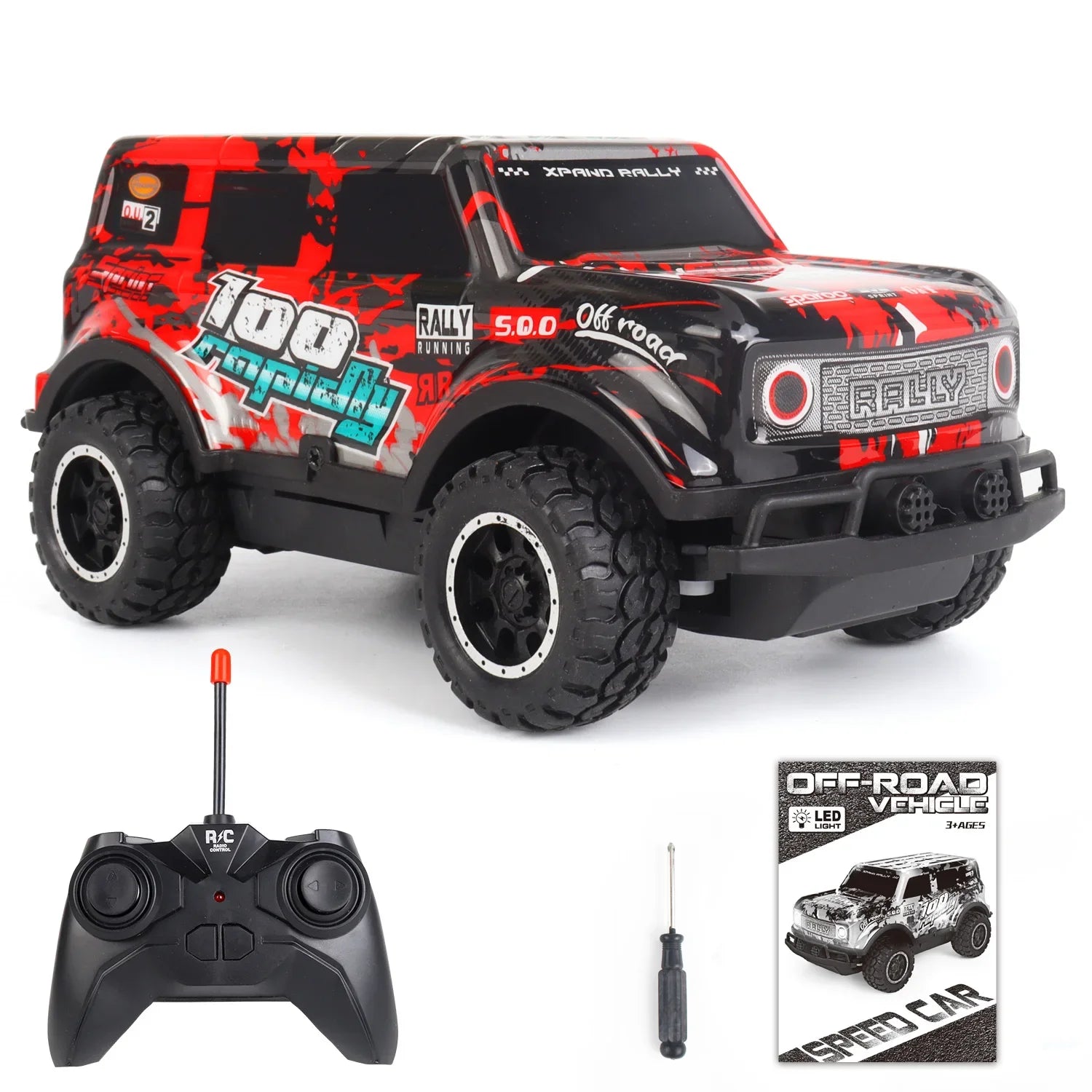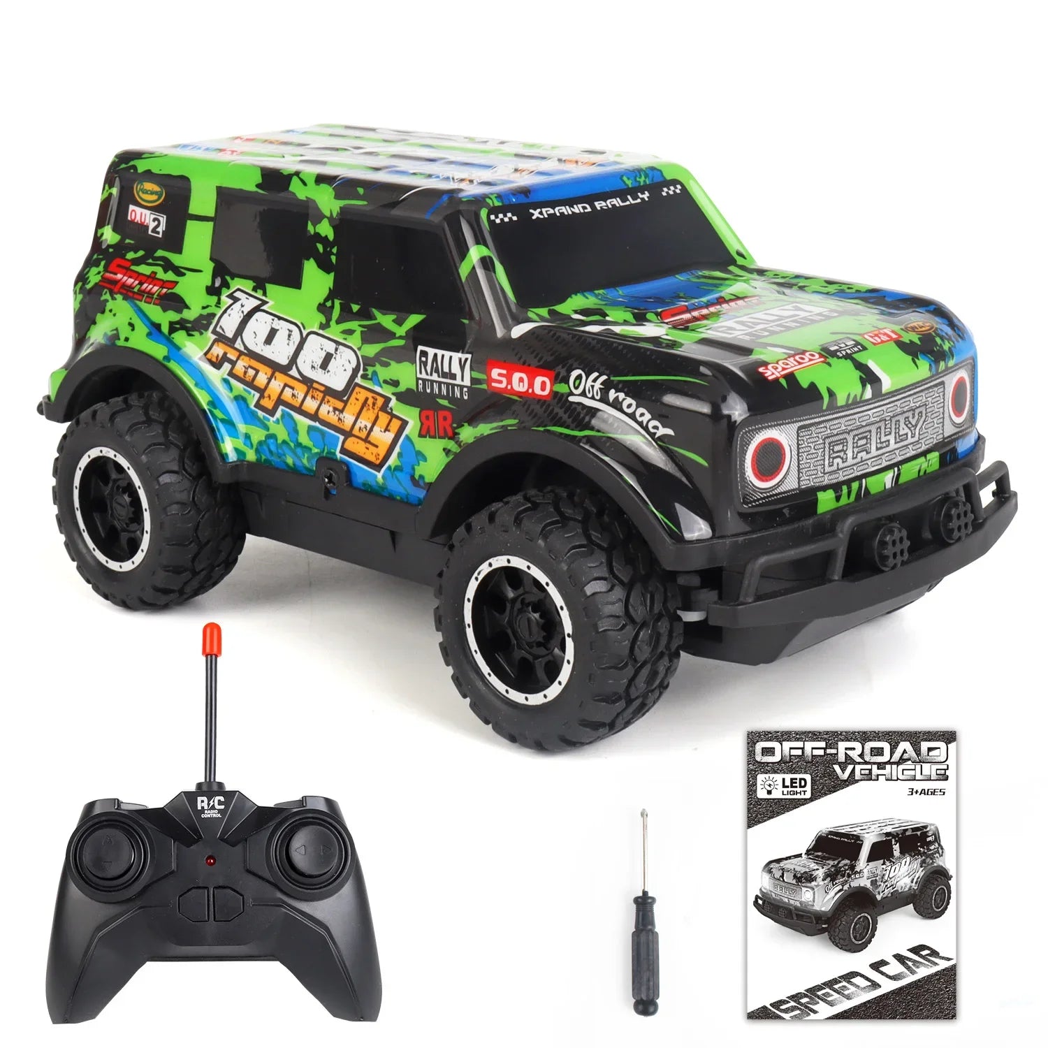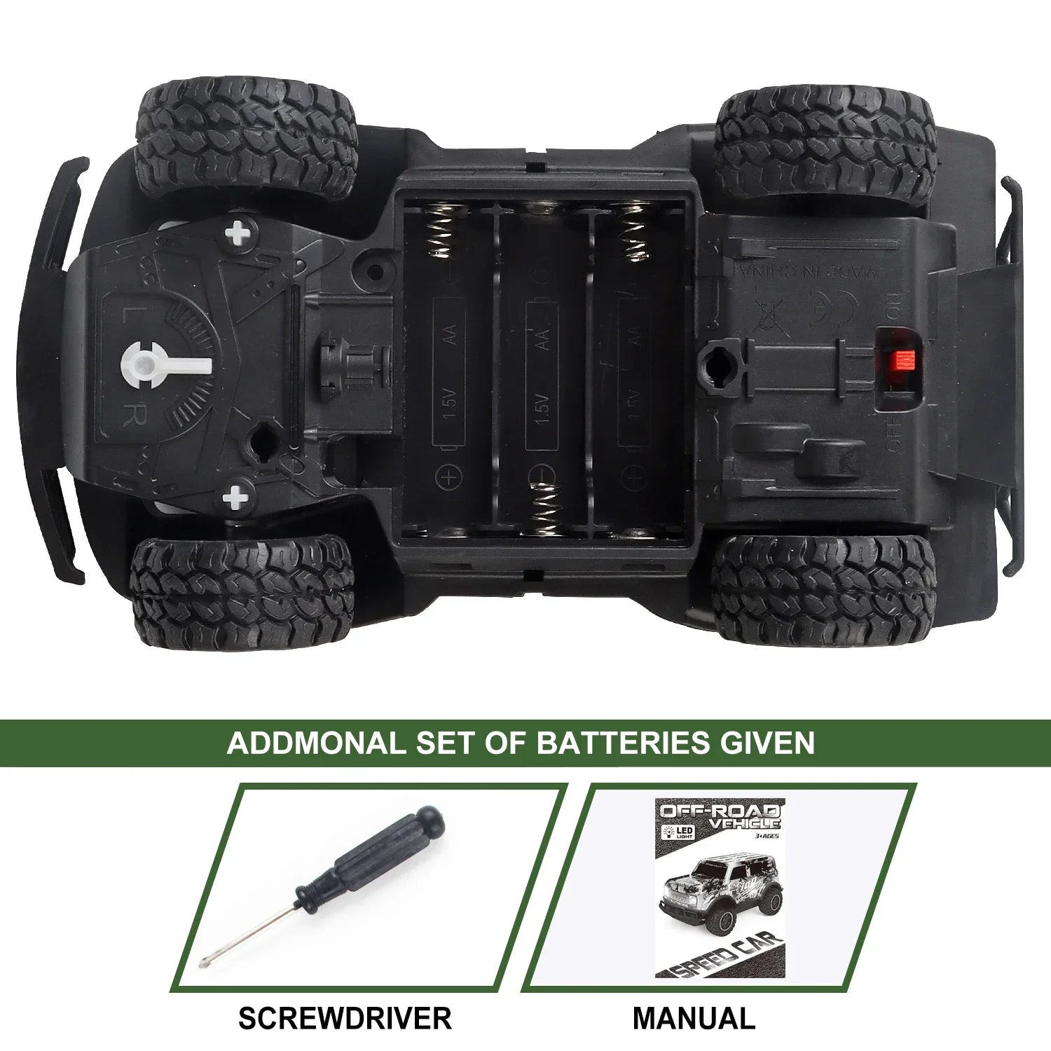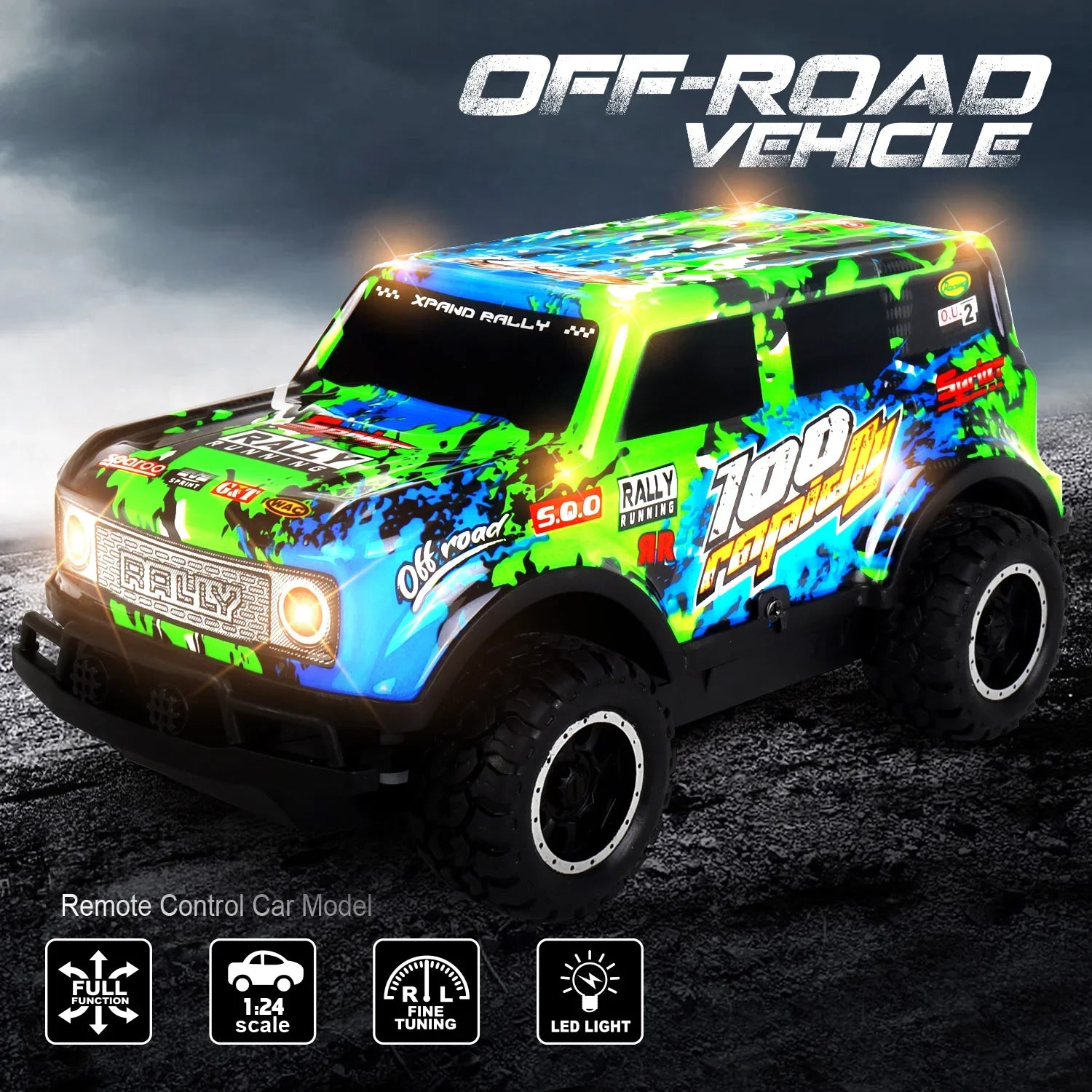 Auto telecomandata Jeep fuoristrada illuminata a LED Piccola proporzione Macchinina giocattolo per bambini non carica
