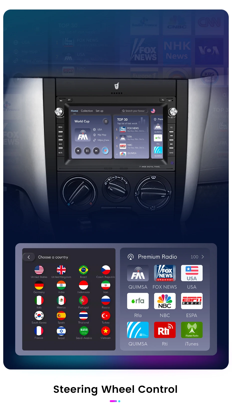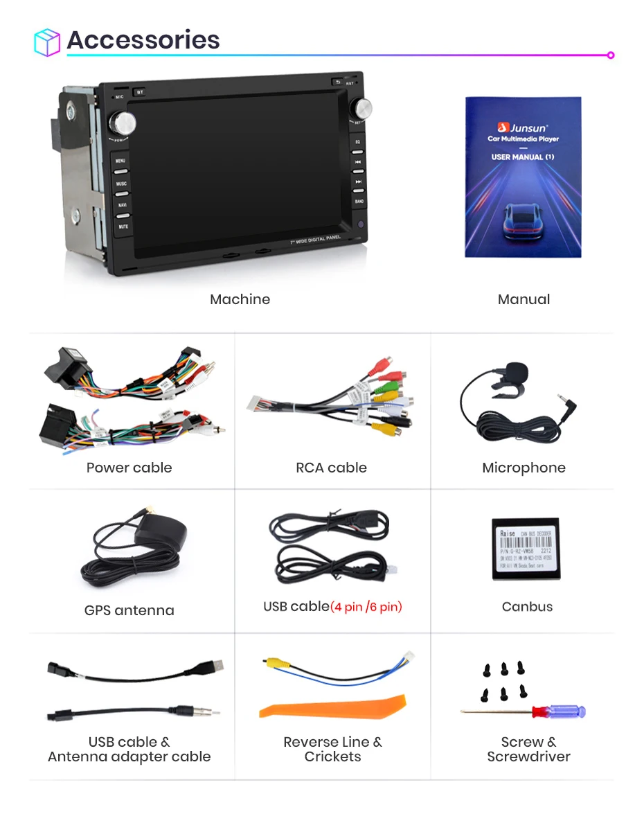 The car Stereo supports iOS & Android phones for mirror link function, connect your smartphone to the car Stereo via an original USB cable gold without cable, easely connect and sync your phone to the car player played on a big screen, users can enjoy many apps.