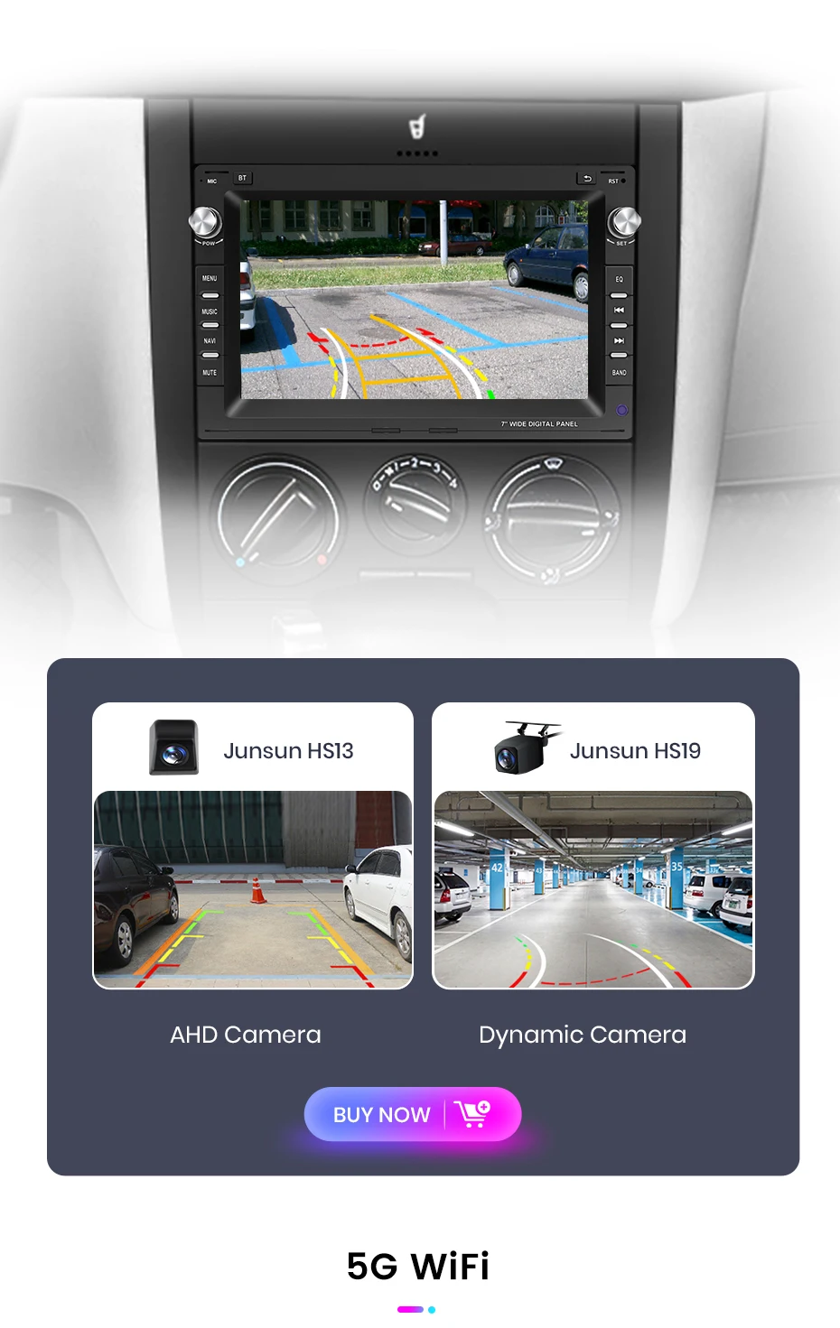 4.Supports aftermarket rear view camera in AHD 1080P,AHD720P, CVBS, PAL, CTSC format ,please note: wifi version does not support AHD 1080P