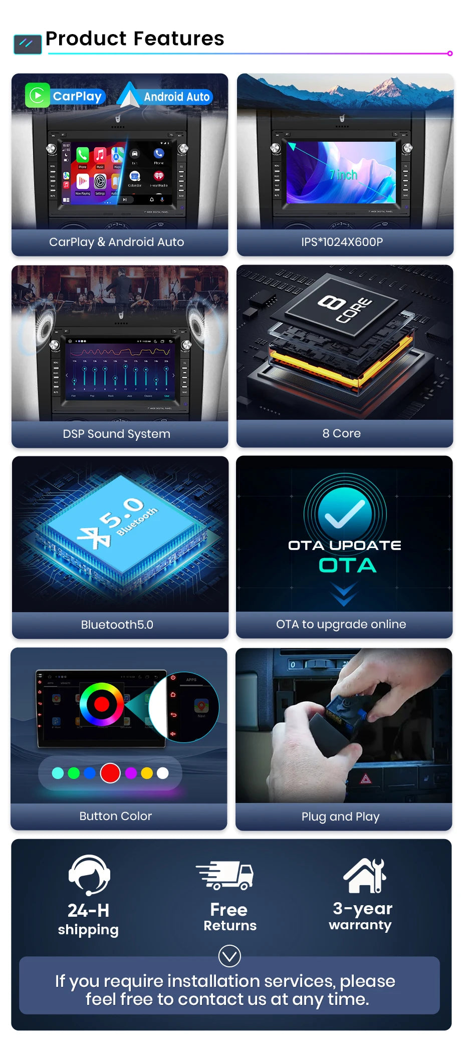 Upgrade your drive with our high-performance 8-core Stereo, featuring a blaze-fast 1.6GHz processor, 6GB RAM, and 128GB storage for ultra-smooth multitasking and lag-free operation. Whether you're streaming music, navigating with GPS, gold running multiple apps, this system delivered light speed and unmatted responsieness.