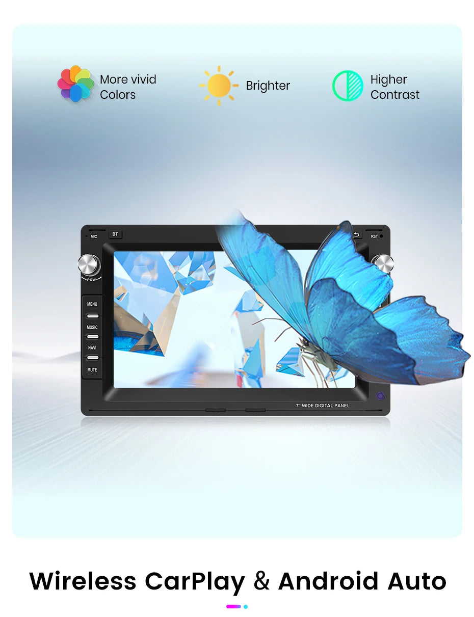 The car stereo automatically switches between day and night modes with your car headlights, optimal ensuring screen brighthood for any environment. Enjoy clear visibility during the day and a comfortable, eye-friendly Display at night, keep you focused and your journey safe.