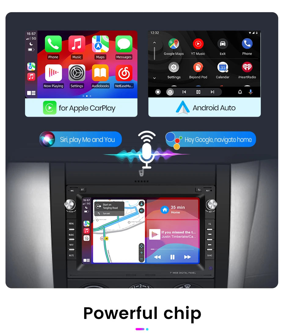 【For Apple Carlay & Android Auto 】Use your phone in a smart, safe way while you drive. Get directions, make call, send and receive messages, and enjoy your favorite music. Siri & Google Assistant can help you do all of these things. All you have to do is ask.