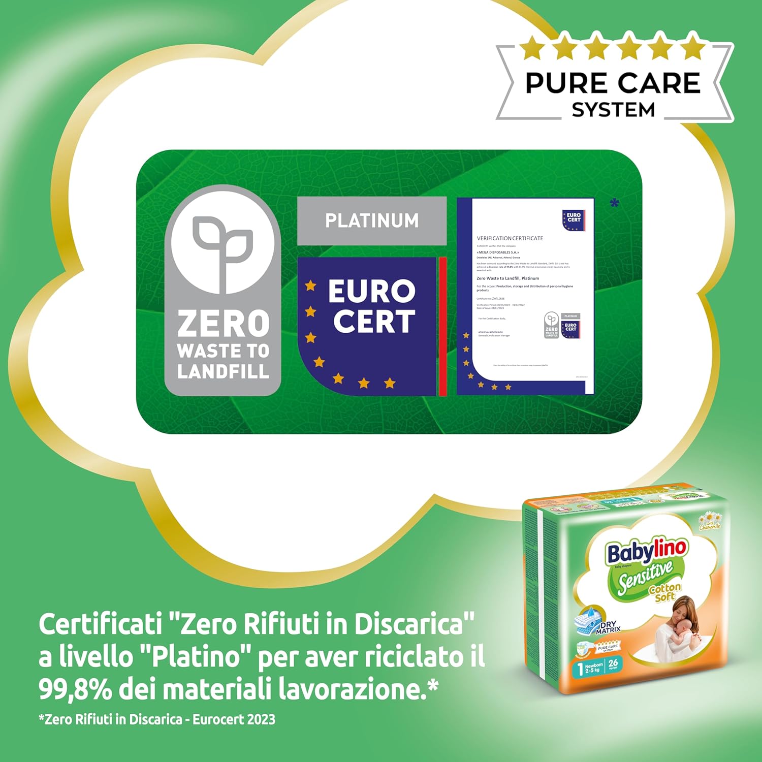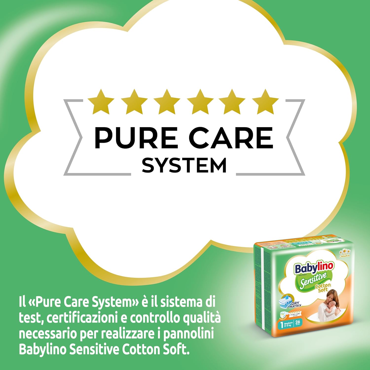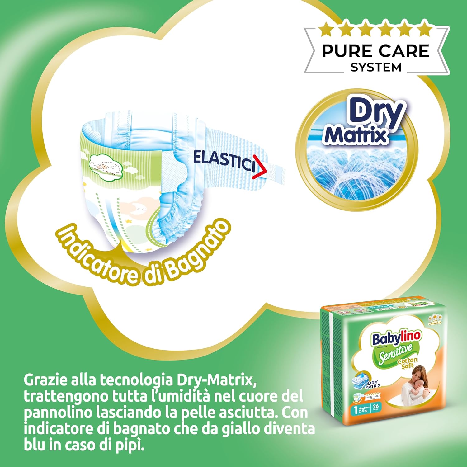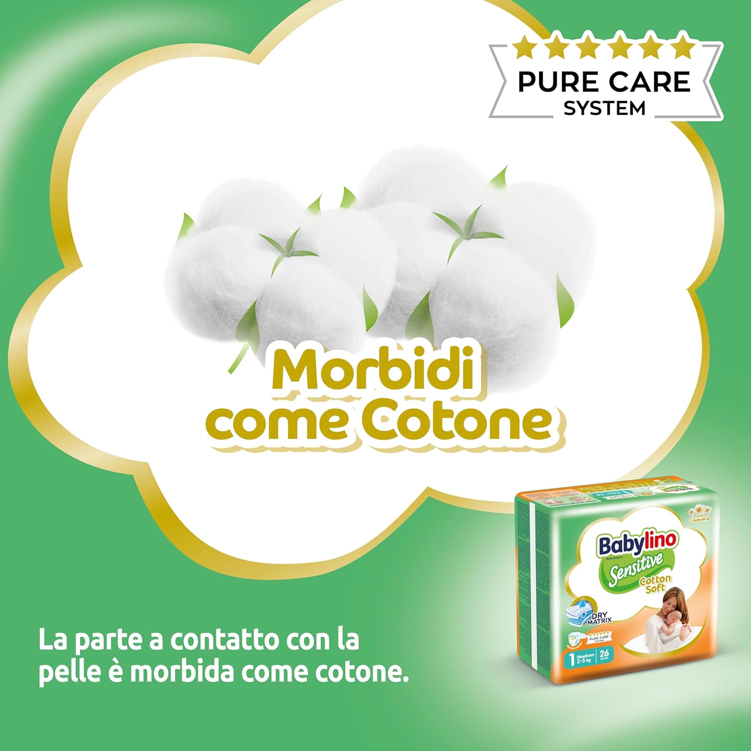 Babylino Sensitive Cotton Soft, Pannolini Neonato Taglia 1, Newborn (2-5Kg), 156 Unità