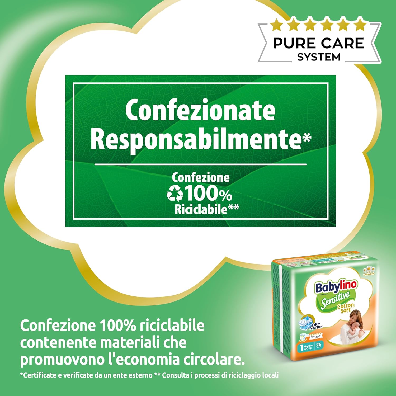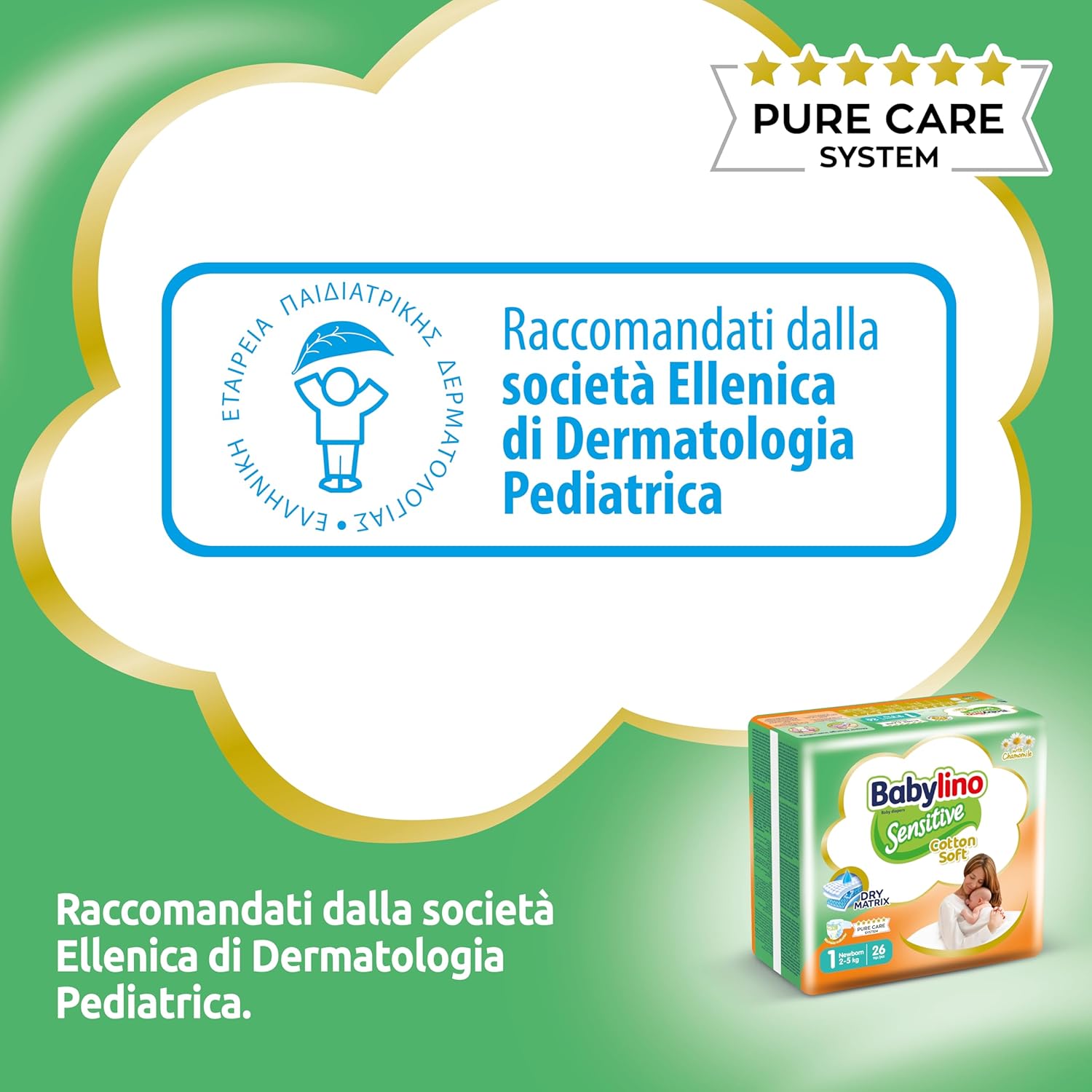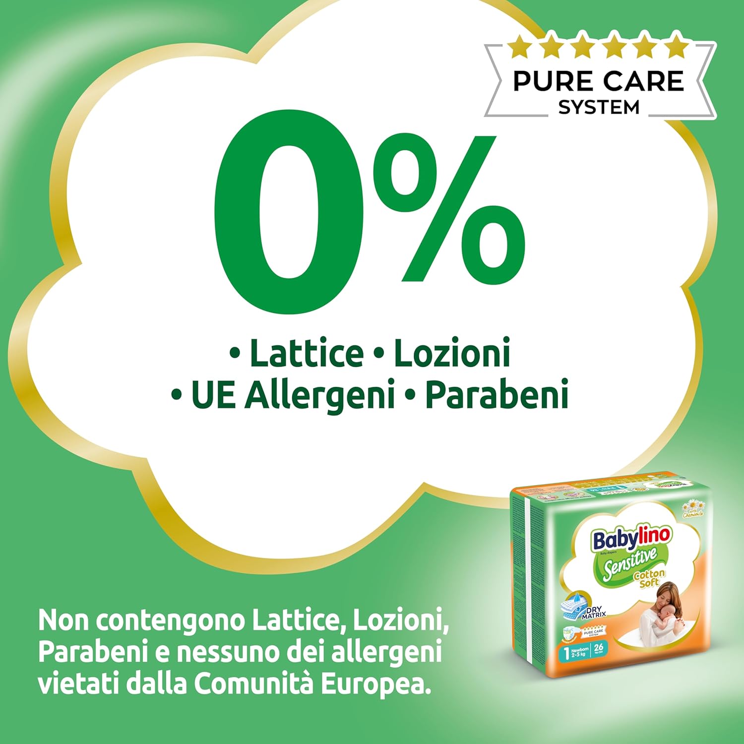 Babylino Sensitive Cotton Soft pannolini per neonato, taglia 1 (2-5 kg), offrono una protezione delicata e confortevole per la pelle... Per saperne di più